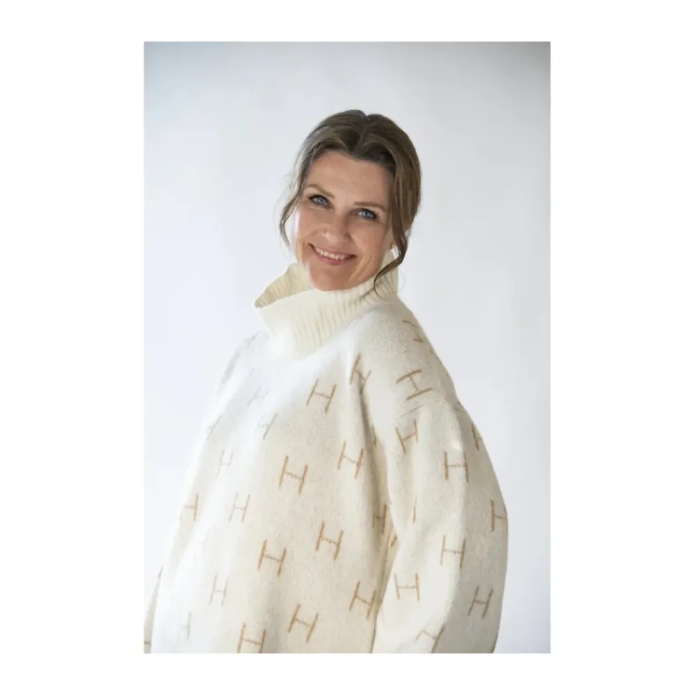 HÉST Fam Sweater Short er en oversized turtleneck strik, der kombinerer en høj halsudskæring med lange, brede ærmer og et all-over monogram ‘H’ print. Designet til lag-på-lag i køligt vejr, og tilbyder en blød, let elastisk følelse og en afslappet silhuet. Nøgleattributter: Hvid | Uldblanding | Varm | Blød overflade | Stræk | Turtleneck halsudskæring | Lange brede ærmer | Monogram ‘H’ print over det hele | Ribkant i kraven, forneden og ved manchetter | Forlænget ryg | Dimensioner & pasform: Oversized fit | Sammensætning & pleje: 49% nylon | 35% merinould | 13% kid mohair | 3% elastan | Håndvask eller maskinvask på uldprogram 30°C. Må ikke bleges. Må ikke tørretumbles. Stryges ved lav temperatur (max 110°C). Må ikke renses.