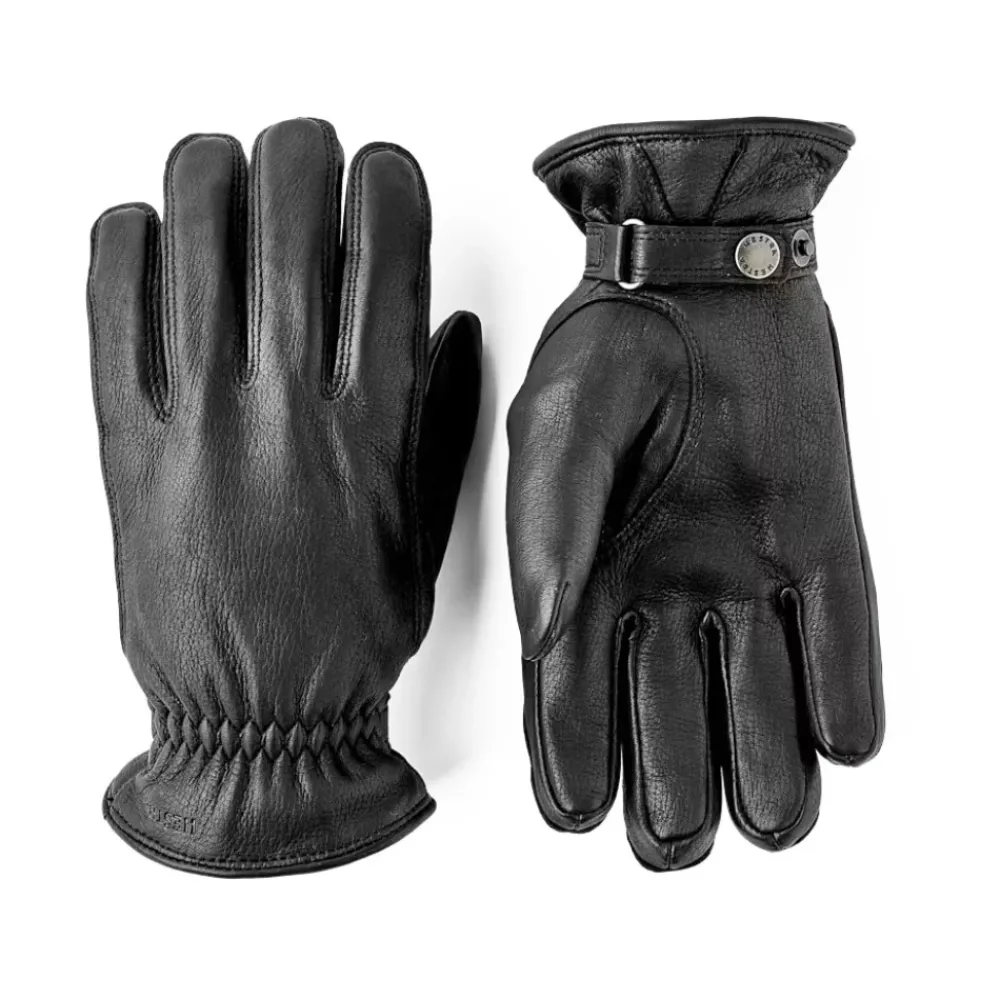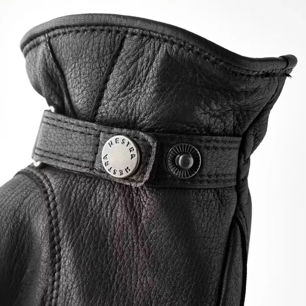 Hold dig varm og stilfuld med disse Hestra handsker lavet af 100% læder med en uldblanding foer. Det tidløse design har en læderrem med en trykknap for en perfekt pasform. Ideel til kølige efterårs- og vinterdage.