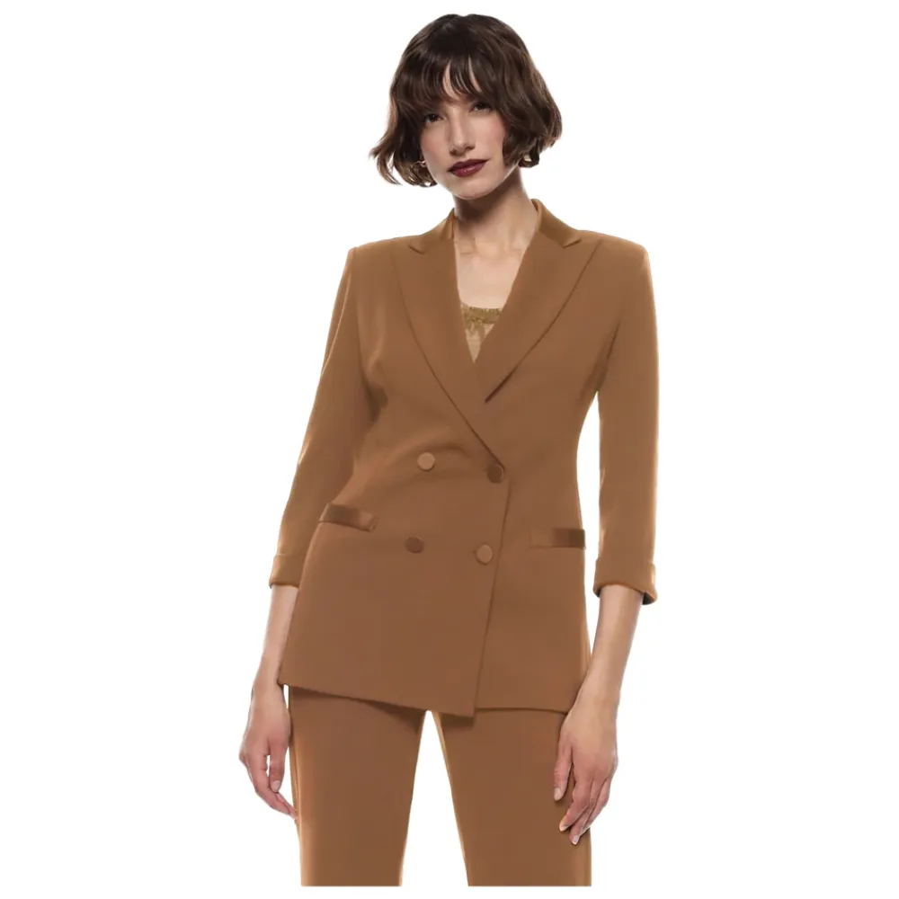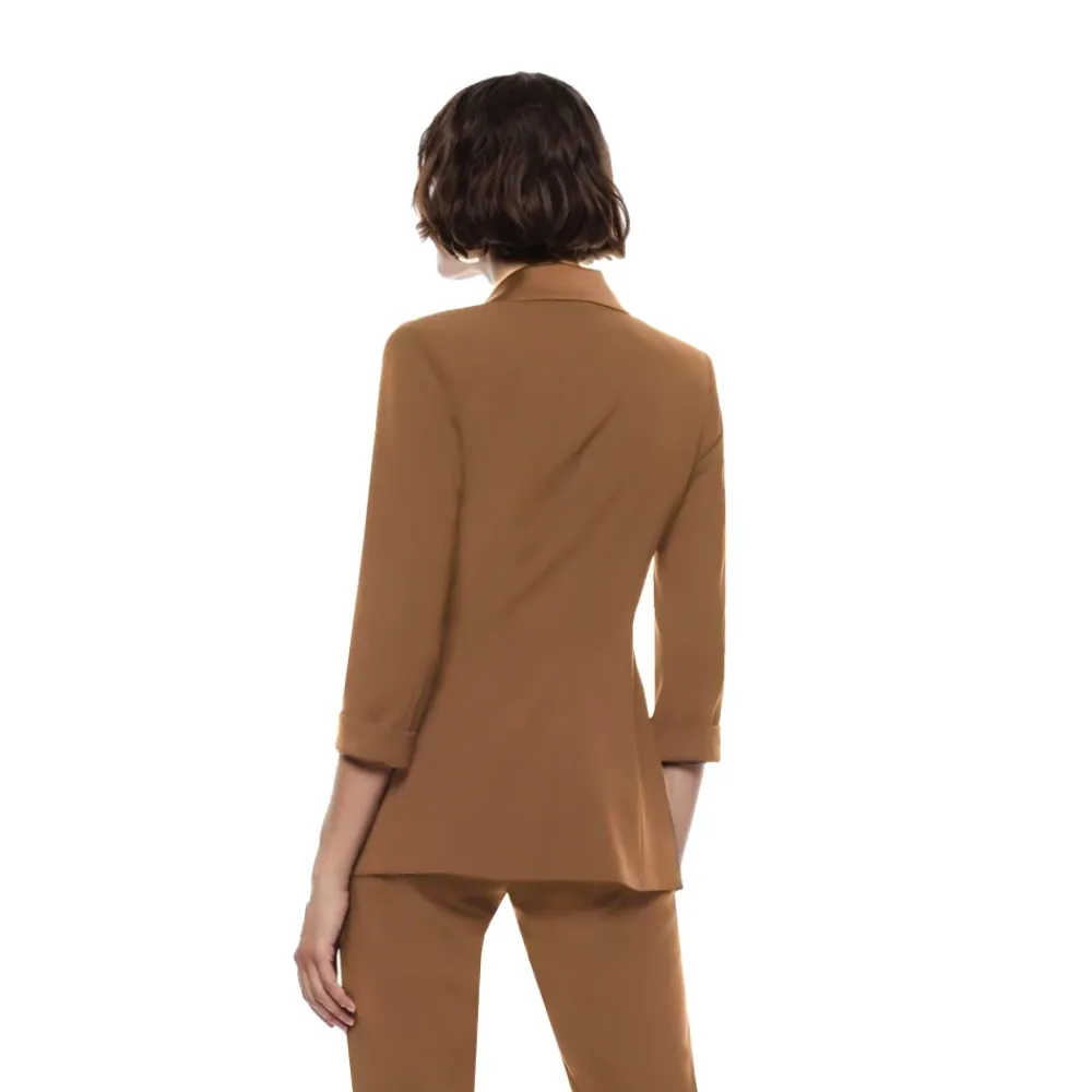 Imperial dobbeltknappet jakke 3/4 ærme kombinerer struktureret skrædderarbejde med en spidsrevers silhuet, hvilket giver en elegant mulighed for smarte, afslappede og formelle looks. Vigtige egenskaber: Brun | Castagna | Polyester | Strækstof | Dobbeltknappet lukning | Fire-knaps lukning | Lommer med frontklap | Spidsrevers | 3/4 ærmer | Vatterede skuldre | Tone-i-tone knapper | Struktureret skrædderarbejde | Sammensætning & pleje: 95% Polyester | 5% Elastan