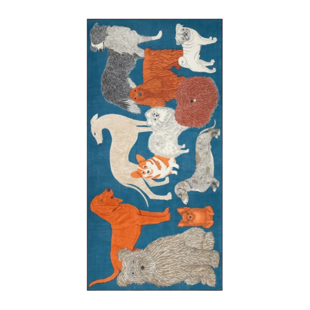 Inoui Éditions Tou Tou Sciarpa er et rektangulært uldtørklæde med et farverigt, kunstnerisk hundeprintdesign. Det giver et dristigt og legende udtryk til hverdagslook og lagdelte outfits. Nøgleattributter: Blå | Multicolor | Uld | Hundeprint grafik | Kunstnerisk farverigt design | Rektangulær form | Blødt, omsluttende stof | Dimensioner og pasform: H 55 x L 180 cm | H 54,99 x L 179,91 cm | Sammensætning og pleje: 100% uld