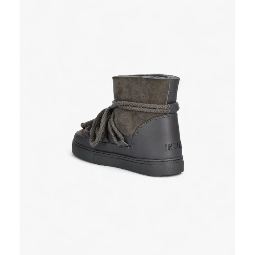 Inuikii Classic er en vinterklar støvle, der kombinerer en signatur afrundet silhuet med et varmt uldinteriør til hverdagsbrug i koldt vejr. Designet til bylivet prioriterer den komfort og et stabilt greb på glatte overflader. Nøgleattributter: Mørkegrå | Læder | Isoleret med uld-/shearlingfor | Skridsikker gummiydersål | Snørelukning | Polstret uld-/shearlingfor | Robust hælkappe for støtte | Afrundet, chunky silhuet | Højt skaft | Viklet snøredetalje omkring skaftet | Sammensætning og pleje: Overdel: Ruskind, Læder | For: Uld / Shearling | Ydersål: Gummi