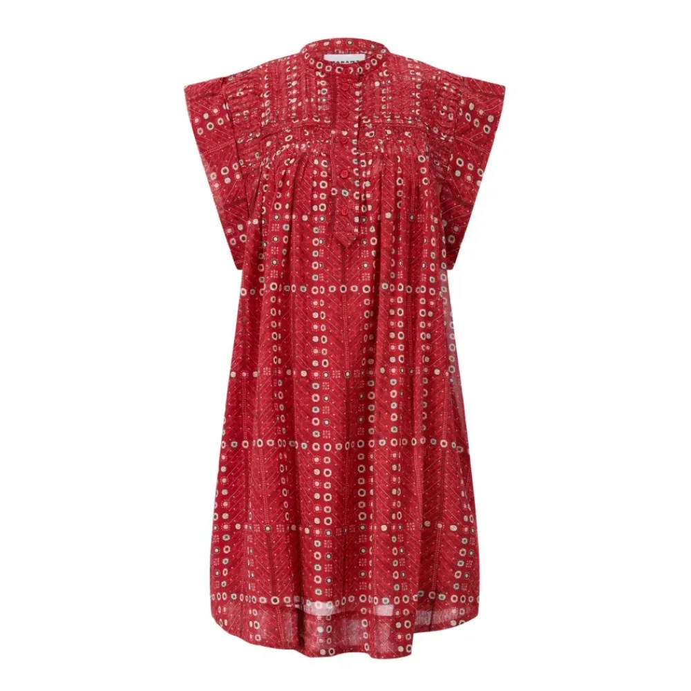 Isabel Marant Midi Kjole i bomuld, med en afslappet pasform og en diskret knaplukning foran, der giver et nemt og stilfuldt hverdagslook. Vigtige egenskaber: Rød | Rot | Bomuld | Indsyet bomuldsfor | Korte ærmer | Rund halsudskæring | Diskret knaplukning foran | Flydende mønstret stof | Dimensioner & pasform: Afslappet pasform | Midi længde | Sammensætning & pleje: Bomuld