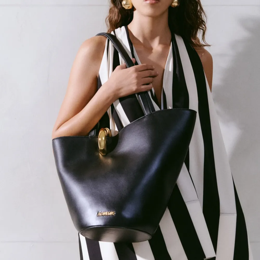 Forkæl dig selv med denne Jacquemus La Bambola Moyen tote taske i sort. Lavet i Italien af 100% ko læder, er denne taske et tidløst tilbehør til den moderne kvinde.