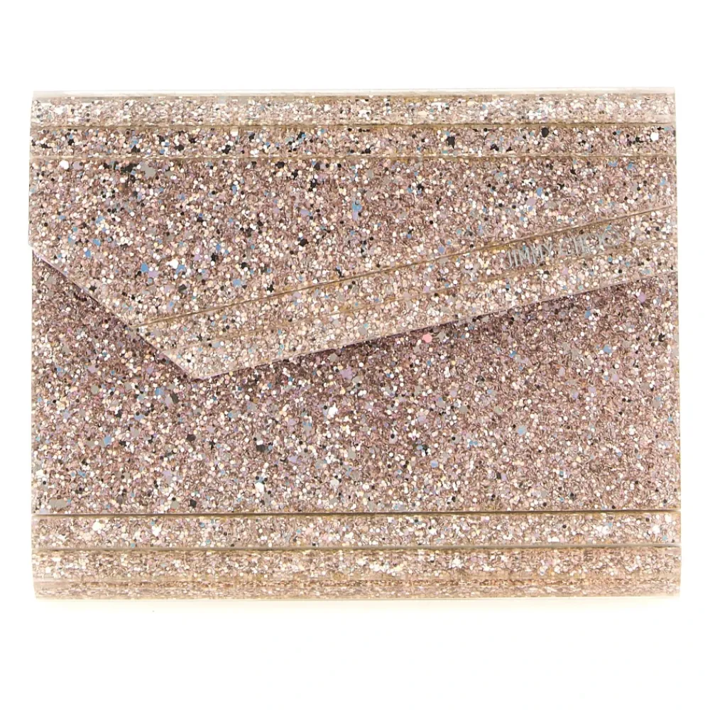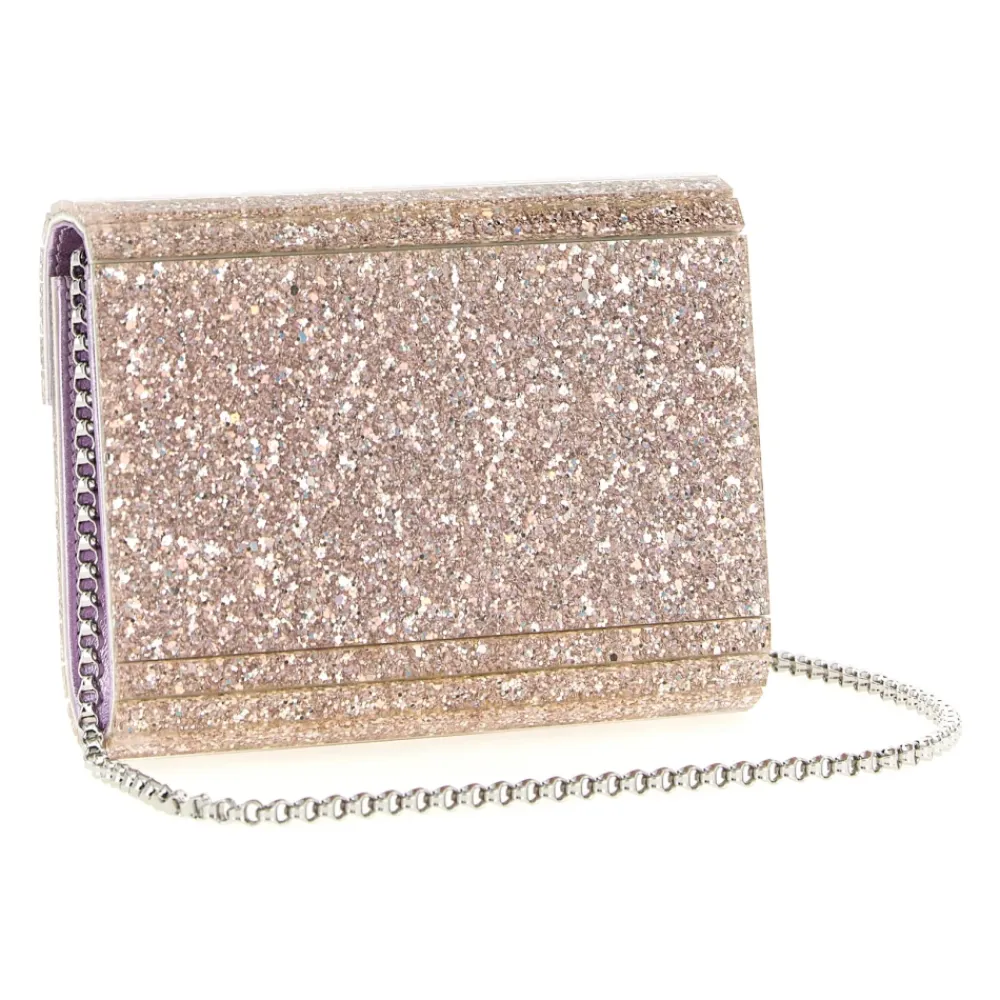 Jimmy Choo Candy Clutch er en glitter akryl aften clutch med detaljer i lamineret læder, designet til at tilføje et statement finish til formelle looks, samtidig med at den tilbyder sikker opbevaring via en magnetisk flap. Nøgleattributter: Pink | Glitter akryl | Magnetisk flaplukning | Aftagelig skulderrem i kæde | Indvendig slip lomme | Glitter finish | Asymmetrisk flap | Detaljer i lamineret læder | Graveret logo foran | Satinforing indvendigt | Dimensioner og pasform: B 17 cm x H 11 cm x D 4,5 cm | Skulderremsfald: 55 cm | One size | Kan bæres som clutch eller skuldertaske | Sammensætning og pleje: Akryl | Lamineret læder | Satinforing | Aftørres med en blød klud. Undgå langvarig udsættelse for fugt og slibende overflader.