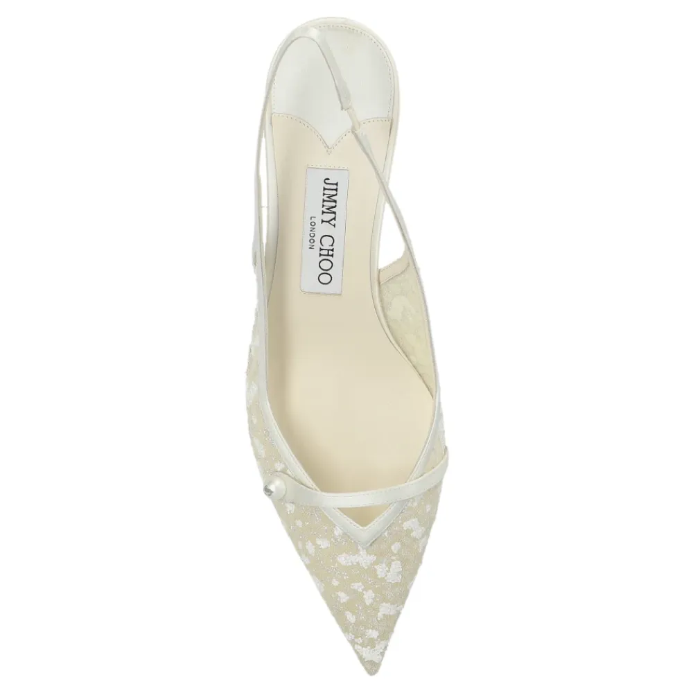 Jimmy Choo Amita 45 Hælesko kombinerer transparent tyl mesh og blomsterbroderi med en slingback silhuet for en raffineret, spidstået pump, der er ideel til elegante lejligheder. Vigtigste egenskaber: Hvid | Tyl mesh | Lædersål | Læderforing for ekstra komfort | Komfortabel at have på hele dagen | Slingback rem | Åben hæl | Tynd perlebesat rem | Spids tå | Blomsterbroderi på overdelen | Slingback med tynd rem og perleudsmykning | Slank, let udstillet mellemhøj hæl | Dimensioner og pasform: Hælhøjde: 5,5 cm | Sålhøjde: 0,5 cm | Normal i størrelsen | Sammensætning og pleje: Overdel: tyl mesh (stof) | Trim: læder | Foring: læder | Sål: læder