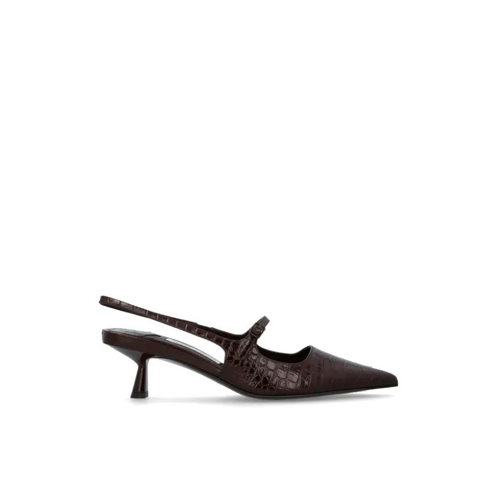 “DIDI” HEELED SHOES udstråler det højeste niveau af sofistikation i en moderne udgave. Denne model fanger opmærksomheden med sin slanke, forlængede spidse tå og elegant svajende kitten hæl, der tilbyder en tidløs silhuet og subtil charme. Hele overdelen har en omhyggeligt præget tekstur, der efterligner krokodillelæder, hvilket understreger det eksklusive karakter og moderne design i overensstemmelse med de seneste trends. Både det ydre lag og interiøret er lavet af udvalgt poleret kornlæder, hvilket sikrer en ekstraordinær komfort. Den åbne slingback hæl og den delikate rem over foden, fastgjort med en diskret spænde, skaber en harmonisk helhed, der fascinerer og glæder. Hver eneste detalje – fra det hvide mærke med den dristige sorte Jimmy Choo London branding til den ekstremt præcise håndværk – vidner om dette produkts luksuriøse oprindelse. HVORFOR VÆLGE DETTE PRODUKT? * Raffineret silhuet og unik krokodillemønster prægning. * Fejlfri finishkvalitet og ædle materialer. * Luksuriøst brand med tradition og en markant stil. * Ekstraordinær komfort takket være gennemtænkt konstruktion og omhyggelig materialevalg. * Et fremragende valg til særlige lejligheder og hverdagsstil. Sål højde: 0,5 cm Hælhøjde: 5 cm