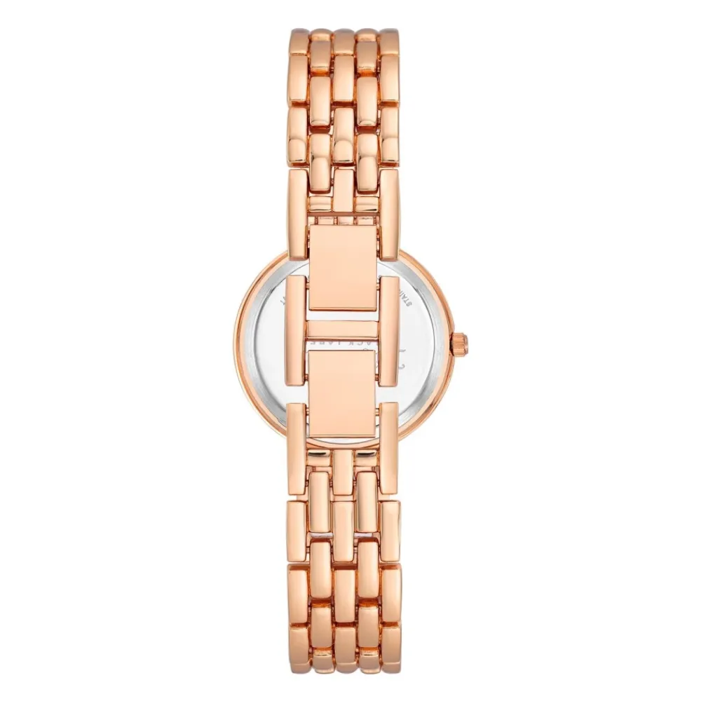 Vi præsenterer Juicy Couture dameur i rosaguld, et fantastisk ur, der kombinerer elegance med funktionalitet. Perfekt til hverdagsbrug, dette ur har et quartz batteri urværk for præcis tidsvisning. Produkt detaljer: Rosaguld | Rødguld | Metal | Vandtæthed: 0 ATM | Smykkelåslukning | Analog visning | Rhinestone front | Dimensioner og pasform: Standard pasform | Sammensætning og pleje: Aftørres med en blød klud.