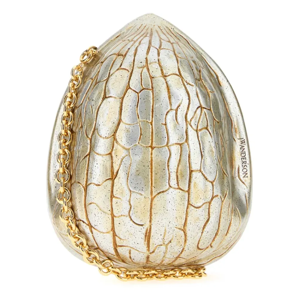 JW Anderson Walnut Clutch er en skulpturel resin taske, der er designet til at skille sig ud ved aftenarrangementer og specielle lejligheder. Dens valnøddeformede silhuet og tofarvede finish gør den til et statement-accessory, der kan bæres som clutch eller over skulderen. Nøgleattributter: Grå | Sølv | Resin | Aftagelig skulderkæde | Magnetlukning | Enkelt hovedrum | Kan bæres som clutch eller crossbody/skulder | Valnøddeformet silhuet | Tofarvet resin finish | Graveret logo | Patina-stil overflade | Dimensioner & pasform: Bredde: 15 cm | Højde: 11 cm | Dybde: 10 cm | Skulderremslængde: 29 cm | One size | Sammensætning & pleje: Ydre: 100% resin | For: 100% polyester | Hardware: metalkæde | Aftørres med en blød klud.