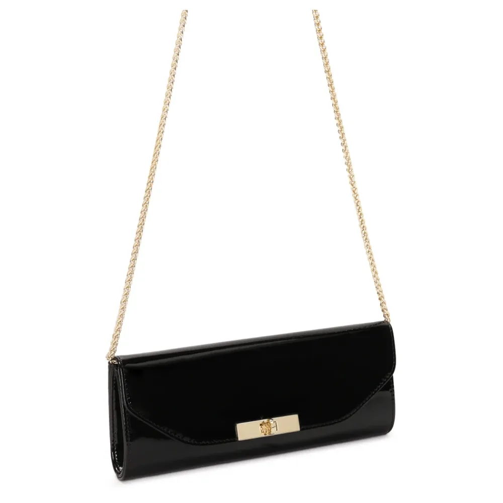 En elegant sort clutch taske med en aflang, strømlinet form er et smart tilbehør lavet af laklæder. Dens blanke overflade tilføjer dybde og luksuriøs appel, hvilket gør det til det perfekte valg til aftenbegivenheder og formelle lejligheder. Håndtasken opretholder en slank, minimalistisk silhuet, der understreger dens tidløse karakter. Lukklappen har en twistlås i form af KAZAR-monogrammet – en subtil, men iøjnefaldende detalje, der tilføjer klasse og unikhed. Indersiden af clutch tasken, omhyggeligt færdiggjort, tilbyder tilstrækkelig plads til essentielle genstande som telefon, nøgler eller små kosmetik. Den sorte farve, kombineret med den lakerede finish, gør tasken ekstremt alsidig og passer perfekt til både aften- og elegant styling. Dette tilbehør er kvintessensen af klasse og moderne design, perfekt til kvinder, der værdsætter tidløs elegance. Produkt detaljer: Hovedrum lukket med en klap med twistlukning. Indvendigt 1 åbent lomme.