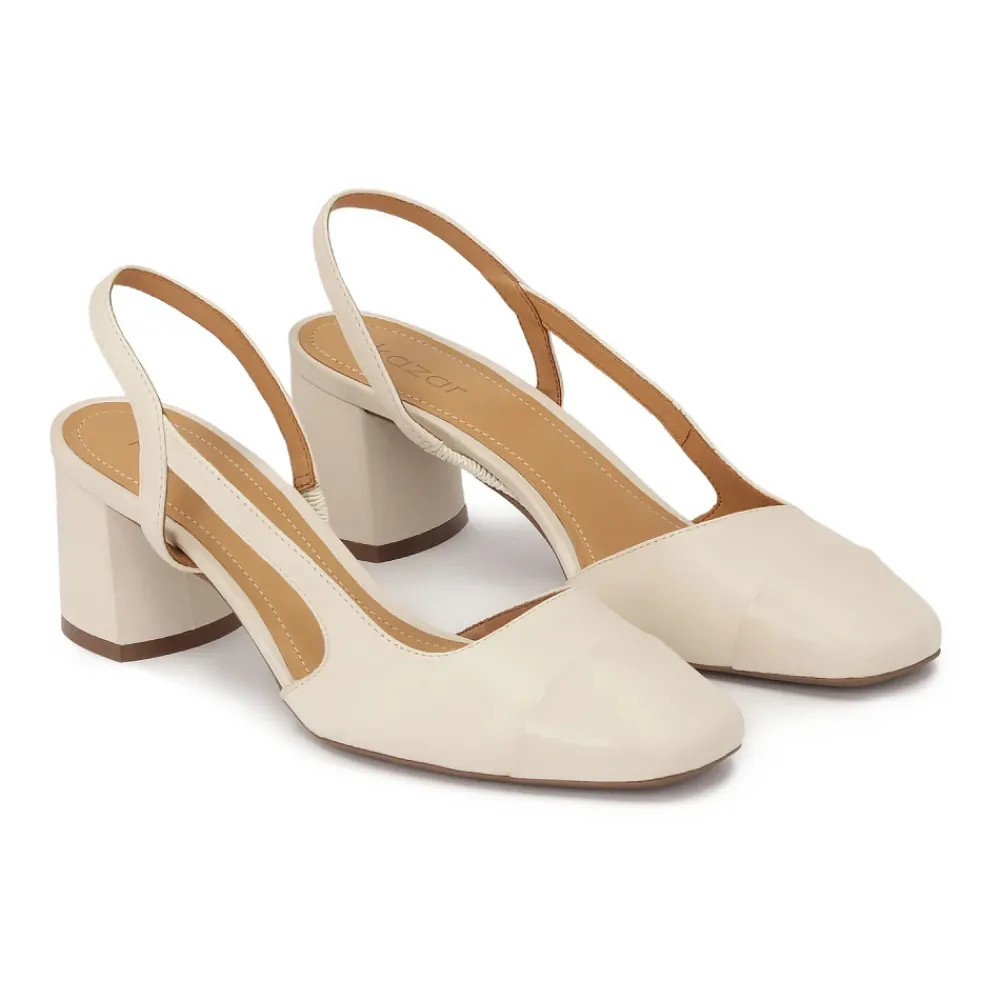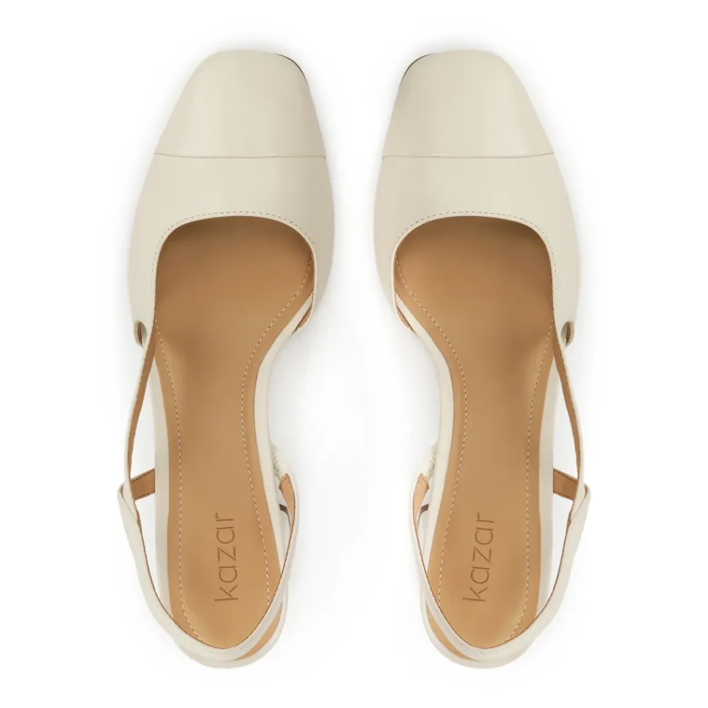 Cremepumps lavet af høj kvalitet naturlæder er et elegant valg for kvinder, der værdsætter klassikere og komfort. Modellen er kendetegnet ved en udskæring øverst med en åben hæl, hvilket giver skoene et subtilt, feminint udseende og gør dem ideelle til varmere dage. Den blokerede tå tilføjer et chic touch og giver komfort samtidig med at den understreger deres tidløse karakter. Skoene er sat på en stabil stiletto hæl, som subtilt forlænger silhuetten, samtidig med at den sikrer komfort selv under langvarig brug. Den delikate cremefarve gør disse pumps til et alsidigt tilbehør, ideelt til både formel styling og mere afslappede ensembler. Dette er en harmonisk kombination af elegance, klassikere og funktionalitet. Brugskomforten garanteres af foret lavet af topkvalitets semianilin gedeskind.