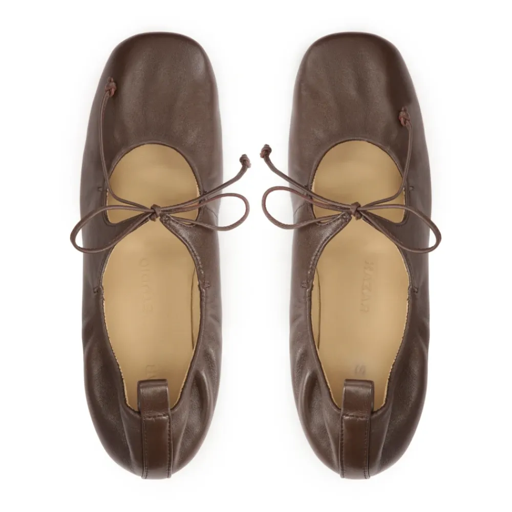 Kazar Studio Ballerina Sko*Mørkee ballerinaer med bundet tåstrop Brun