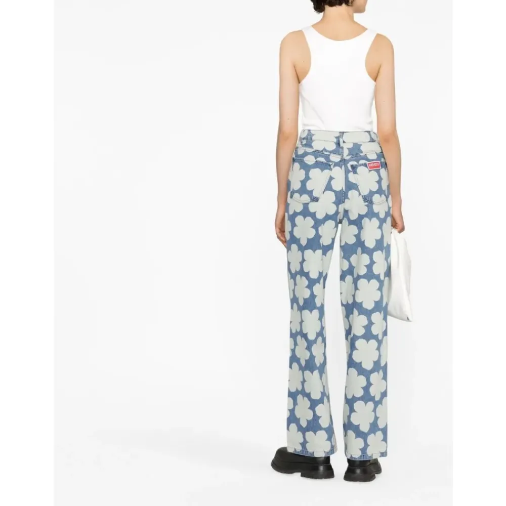 Kenzo Ayame Wide Jeans leverer en afslappet silhuet med brede ben i denim, ideel til hverdagsbrug. Vigtigste egenskaber: Blå | Denim | Bomuld | Knap- og lynlåslukning | Bæltestropper | Fem lommer | Brede ben | Cropped | Logo detalje bagpå | Dimensioner og pasform: Bred pasform | Løs pasform | Sammensætning og pleje: 100% Bomuld