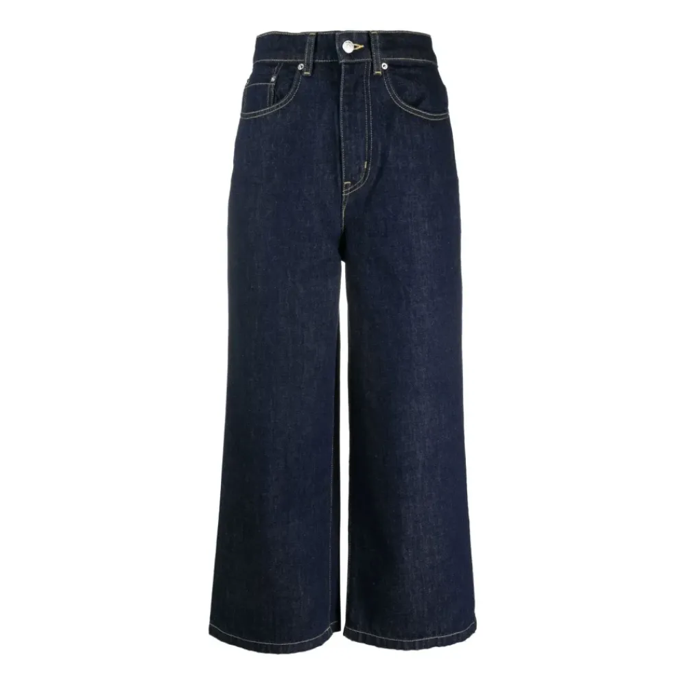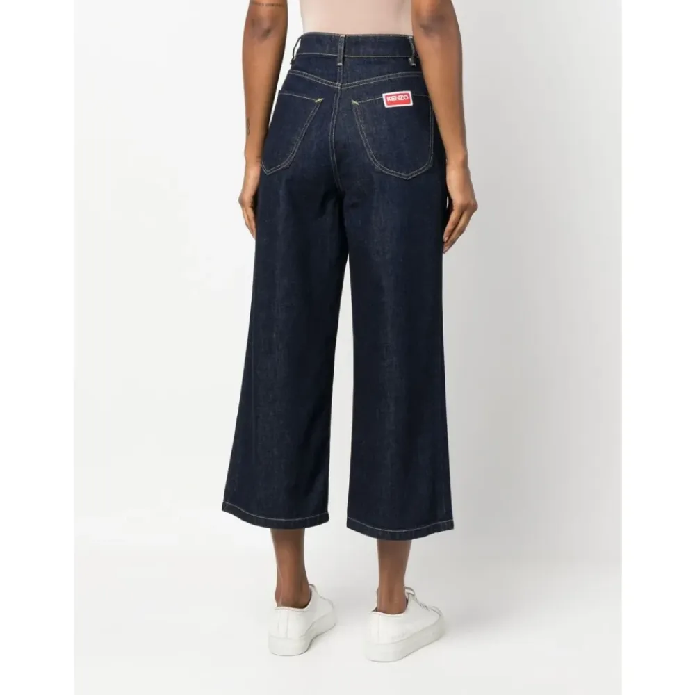 Kenzo Wide Jeans er cropped, wide-leg denimbukser skabt til et afslappet, arbejdstøjsinspireret look. De skiller sig ud med deres rummelige silhuet og praktiske detaljer, ideelle til afslappet hverdagsbrug. Nøgleattributter: Blå | Denim | Bomuld | Knap- og lynlåslukning | Bæltestropper | Fem lommer | Spændejustering bagpå | Wide leg | Cropped kant | Flosset kant | Høj talje | Store påsyede forlommer | Logomærke bagpå | Stonewashed finish | Spænde detalje bagpå | Dimensioner & pasform: Afslappet pasform | Sammensætning & pleje: 100% bomuld | Maskinvask