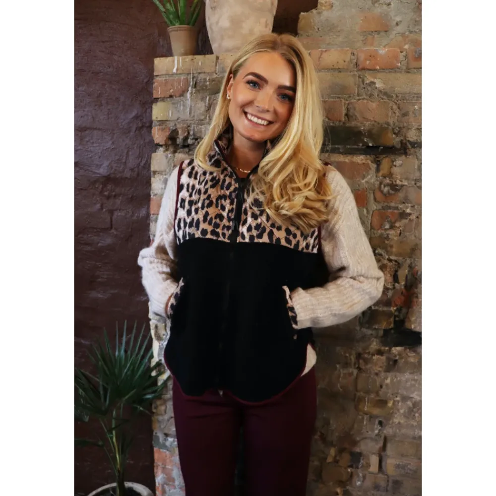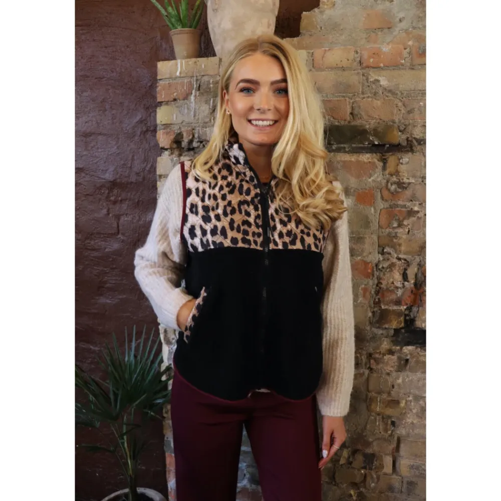 Liberté Teddy Leo Vest kombinerer en quiltet leopardprintet overdel med en blød teddy-underdel for lagvis varme og enestående stil. Ideel som et mellemlag eller som en selvstændig beklædningsgenstand på kølige dage. Nøgleattributter: Multicolor | Lux Leo Black Bordeaux | Polyester | Fuld lynlås foran | To åbne forlommer | Høj krave | Quiltet overdel med beige leopardprint | Sort teddy-underdel med leoparddetaljer ved lommerne | Bordeaux kontrast piping | Mål og pasform: Almindelig / rummelig pasform | Sammensætning og pleje: 100% polyester | Maskinvask 30°C skånsom cyklus; vask med vrangen ud. Følg pleje- og brugsanvisningerne.