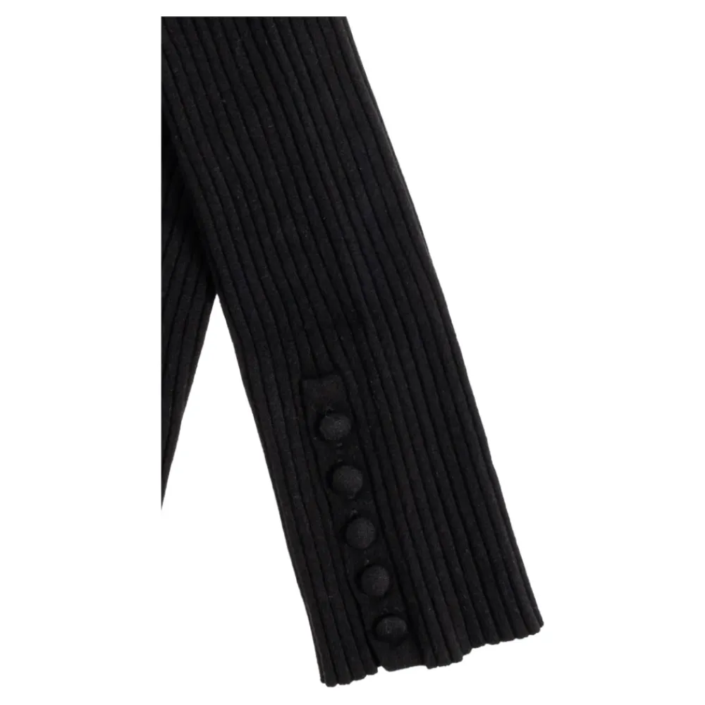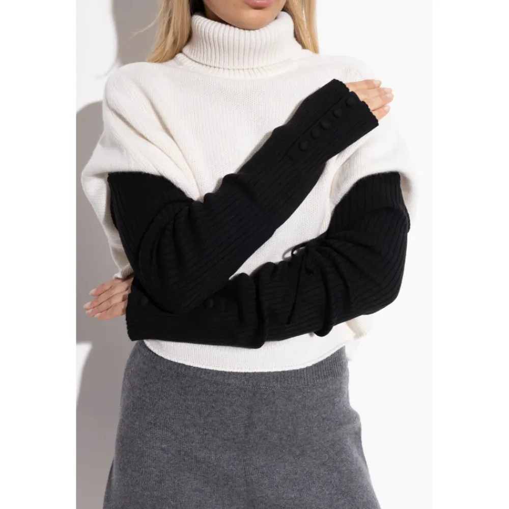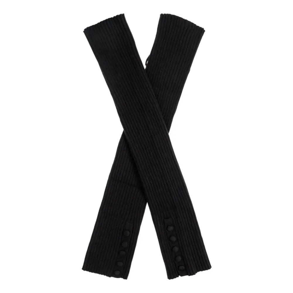Lisa Yang Neri Lange Ærmer er raffinerede langærmede accessories, der kombinerer en lodret ribstrik med en række strikbeklædte knapper på manchetten for strukturel elegance og subtile detaljer. Nøgleattributter: Sort | Bomuld og cashmere | Ekstraordinær blødhed | Stræk og elasticitet | Varme | Lodret ribmønster | Række med fem strikbeklædte knapper på ydre manchet | Lange ærmer med figursyet silhuet | Dimensioner og pasform: Figursyet ved skuldre og underarme | Lange ærmer | Sammensætning og pleje: Bomuld | Cashmere