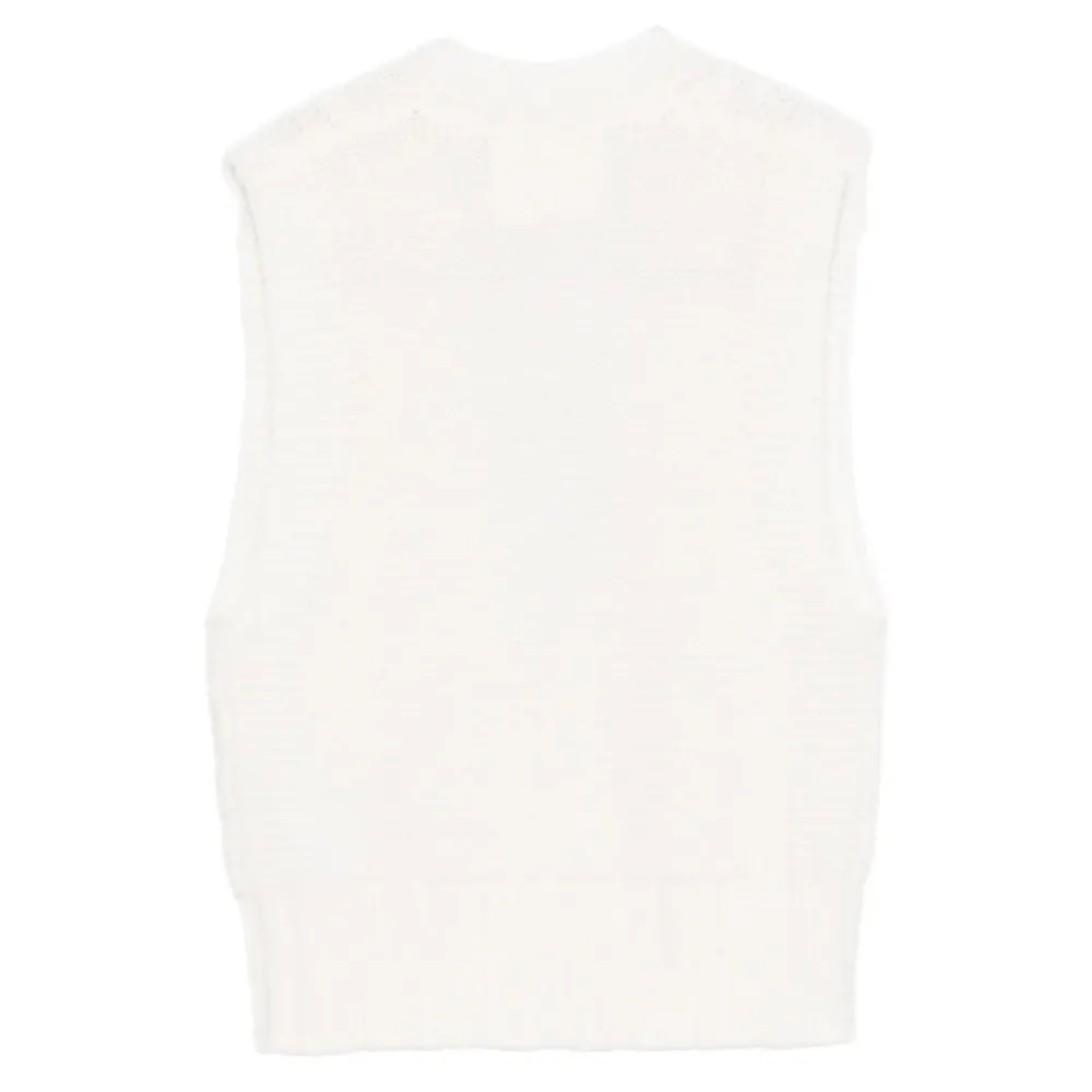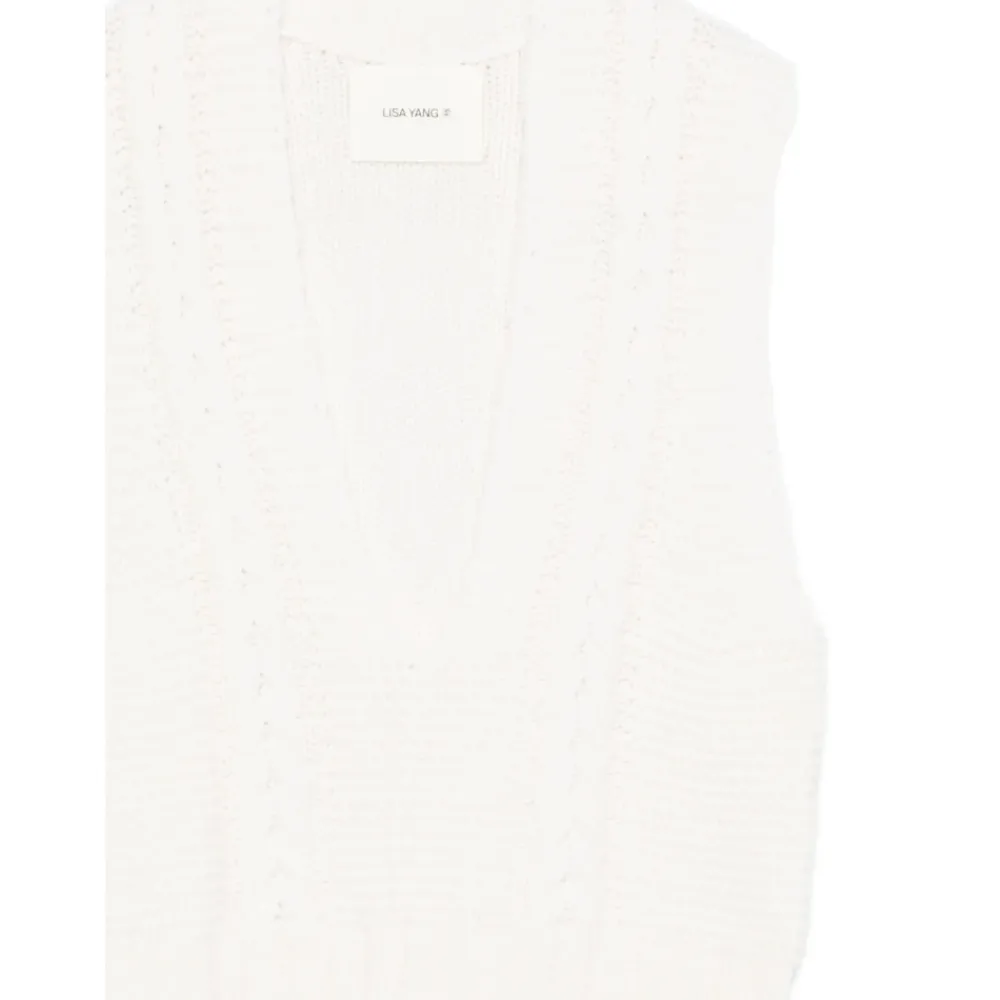 Lisa Yang Meng Top er en ærmeløs cashmere top med V-udskæring og ribkant, designet til nem lagdeling og raffineret hverdagsbrug. Vigtige egenskaber: Hvid | Cashmere | V-udskæring | Ærmegab | Ribkant | Mål og pasform: Modellen er iført størrelse 0 | Regular fit | Sammensætning og pleje: 100% cashmere | Rens eller håndvask koldt. Brug ikke blegemiddel eller skyllemiddel. Lægges fladt til tørre; vrid ikke. Stryg kun ved lav varme.