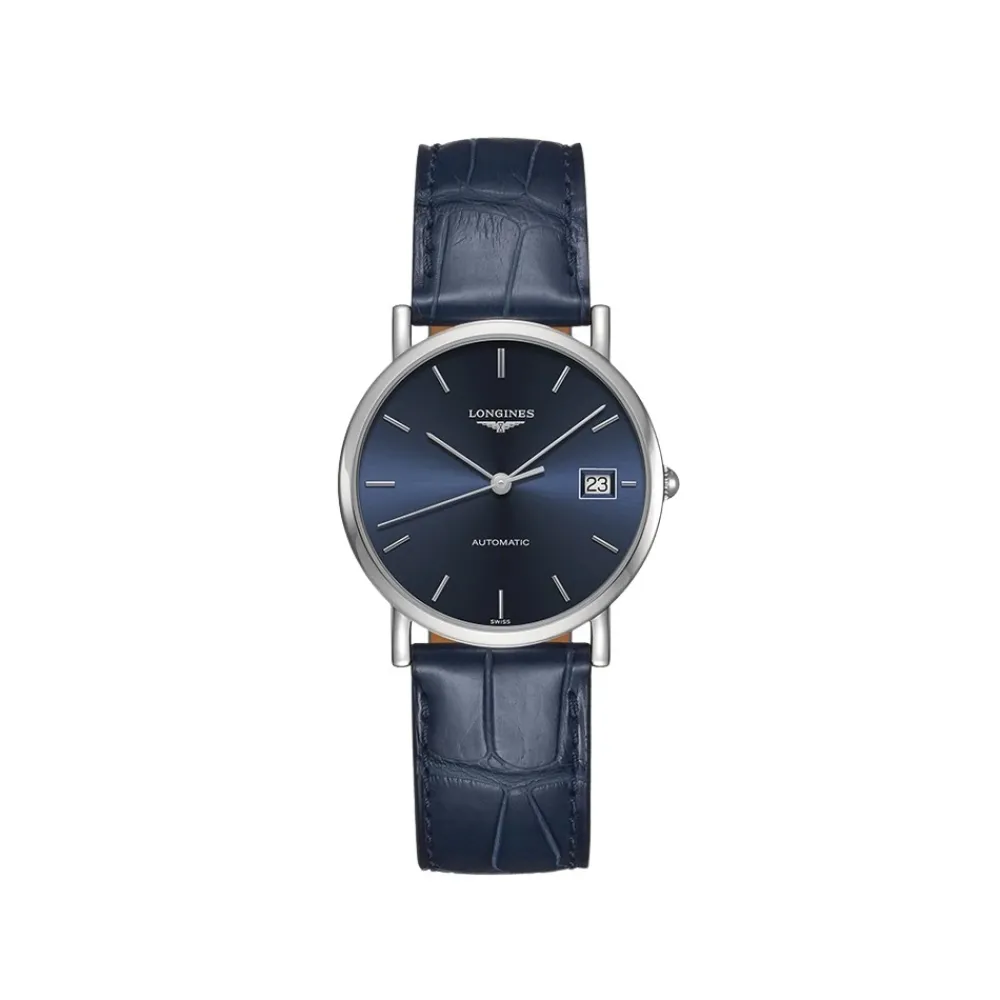 Longines Elegant Ur kombinerer en 34,5 mm blå urskive med et automatisk urværk for et raffineret hverdagslook. Urkassen i stål og læderremmen giver et klassisk dress-watch udtryk. Vigtige egenskaber: Blå | Sølv | Stål | Automatisk urværk | Vandtæthed: 3 Bar (30 m) – egnet til håndvask | Ridsefast safirkrystal | Læderrem | Stållukning | Rund urkasse | Klassisk dress-watch design | Blå urskive | Dimensioner & pasform: Urkassediameter: 34,5 mm | Sammensætning & pleje: Stål | Læder | Safirkrystal | Tør af med en blød klud; undgå nedsænkning udover 3 Bar; få den serviceret af en autoriseret urmager.