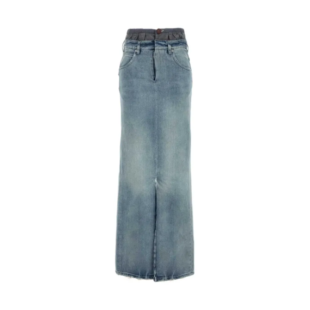 Maison Margiela Nederdele*Maxi Denim Nederdel med Slids Blå