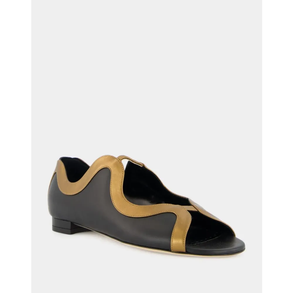 Manolo Blahnik Chilki Lædersandaler kombinerer blødt lammenappa-læder med en bronze slange-kant for en raffineret, overgangs-flad sandal. Den åbne tå silhuet og lave stablede hæl gør dem velegnede til pæne efterårslooks og hverdagsbegivenheder. Nøgleattributter: Sort | Bronze | Lammenappa | Åben tå | Bronze slange-kant | Stablet hæl | Fremstillet i Italien | Dimensioner & pasform: Hæl: 10 mm | Sammensætning & pleje: Overdel: 100% Lammenappa | Foring: 100% Kid Læder | Sål: 100% Kalvelæder | Specialist læderrensning.