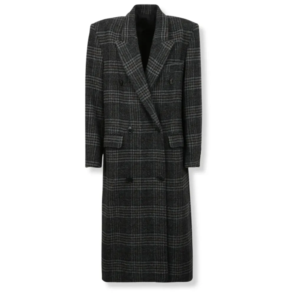 Marant étoile Lexana Coat er en dobbeltradet frakke i ren ny uld, designet med en løs, lang silhuet. Det ternede finish og den italienske jakkesætskrave gør den til et alsidigt yderlag til køligt vejr. Nøgleattributter: Grå | Ren ny uld | Dobbeltradet knaplukning | Forlommer med klap | Brystlomme | Fuldt foret | Italiensk jakkesætskrave | Ternet mønster | Lang længde | Dobbeltradet silhuet | Mål & pasform: Løs pasform | Oversized snit | Sammensætning & pleje: 100% ren ny uld | Må renses