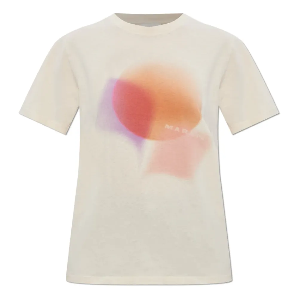 Marant Étoile Zewel T-shirt kombinerer parisisk lethed med et kunstnerisk frontprint, designet til hverdagsbrug. Denne creme farvede bomulds T-shirt skiller sig ud med sin lette fornemmelse og karakteristiske slørede grafiske patch. Vigtige egenskaber: Beige | Creme | Bomuld | Let | Blød fornemmelse | Rund halsudskæring | Korte ærmer | Abstrakt flerfarvet frontprint (violet, orange, pink, rød) | Subtilt bogstavmotiv | Ensfarvet bagside | Mål og pasform: Højde: 176 cm | Buste: 85 cm | Talje: 60 cm | Hofter: 89 cm | Modellen bærer størrelse: S | Almindelig pasform | Sammensætning og pleje: 100% bomuld