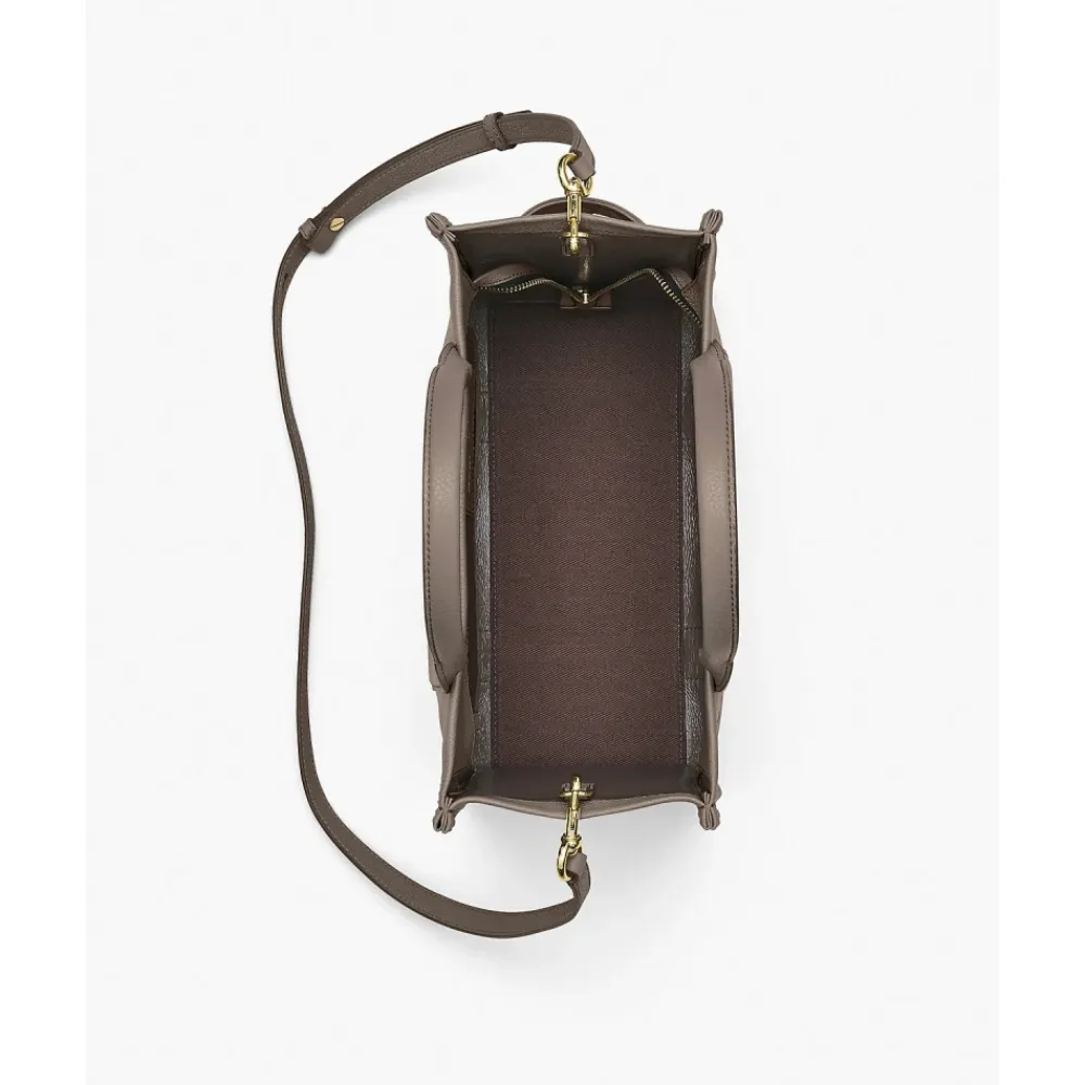 Forhøj din stil med denne gråbrune Marc Jacobs ‘The Leather Medium Tote’ håndtaske. Lavet af fuldkornet læder, den har en præget logo på forsiden, logo-patch på bagsiden, to tophåndtag, justerbar og aftagelig crossbody-rem, flere interne lommer og kortspalte samt lynlås i toppen. Mål: Længde 34 cm, Dybde 15 cm, Højde 27 cm. Remlængde 144 cm, Rembredde 4 cm, Remfald 69 cm, Håndtagfald 12 cm.