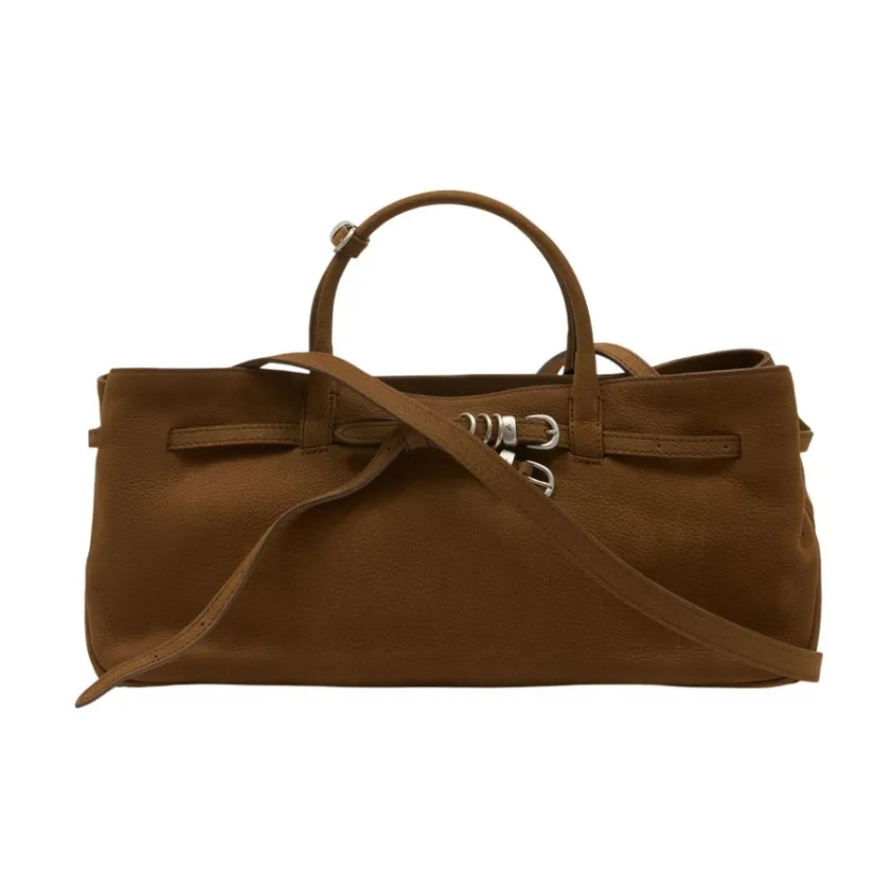 Marge Sherwood Grandma Used Bag er en baguette-formet taske med tophåndtag i ruskindskolæder, designet til hverdagsbrug med konvertible bæremuligheder og en karakteristisk bælte detalje. Vigtige egenskaber: Brun | Chestnut nubuck | Ruskindskolæder | To håndtag | Konvertibel dobbelt bæremulighed | Lukning med karabinlås | Flere indvendige lommer | Bælte detalje | Baguette silhuet | Knotted bælte strop | Dimensioner & pasform: Bredde: 16,5 | Højde: 16,5 | Længde: 14,5 | Sammensætning & pleje: Ruskindskolæder | Bomuldsfor