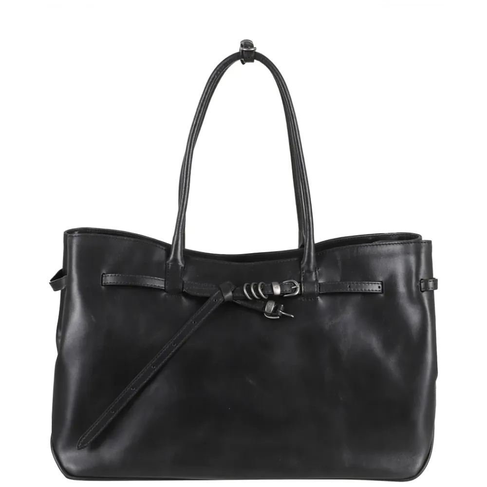 Marge Sherwood Grandma Taske Brugt Stor er en rummelig tote taske, der kombinerer praktisk opbevaring med synlige remdetaljer. Designet fremhæver en knyttet, dekoreret rem for et karakteristisk udseende, mens det holder dine væsentlige ting organiseret. Nøgleattributter: Sort | En indvendig lomme | Knytte- og dekorative remdetaljer | Tote taske silhuet | Mål og pasform: Bredde: 36 cm | Højde: 25 cm | Dybde: 17 cm