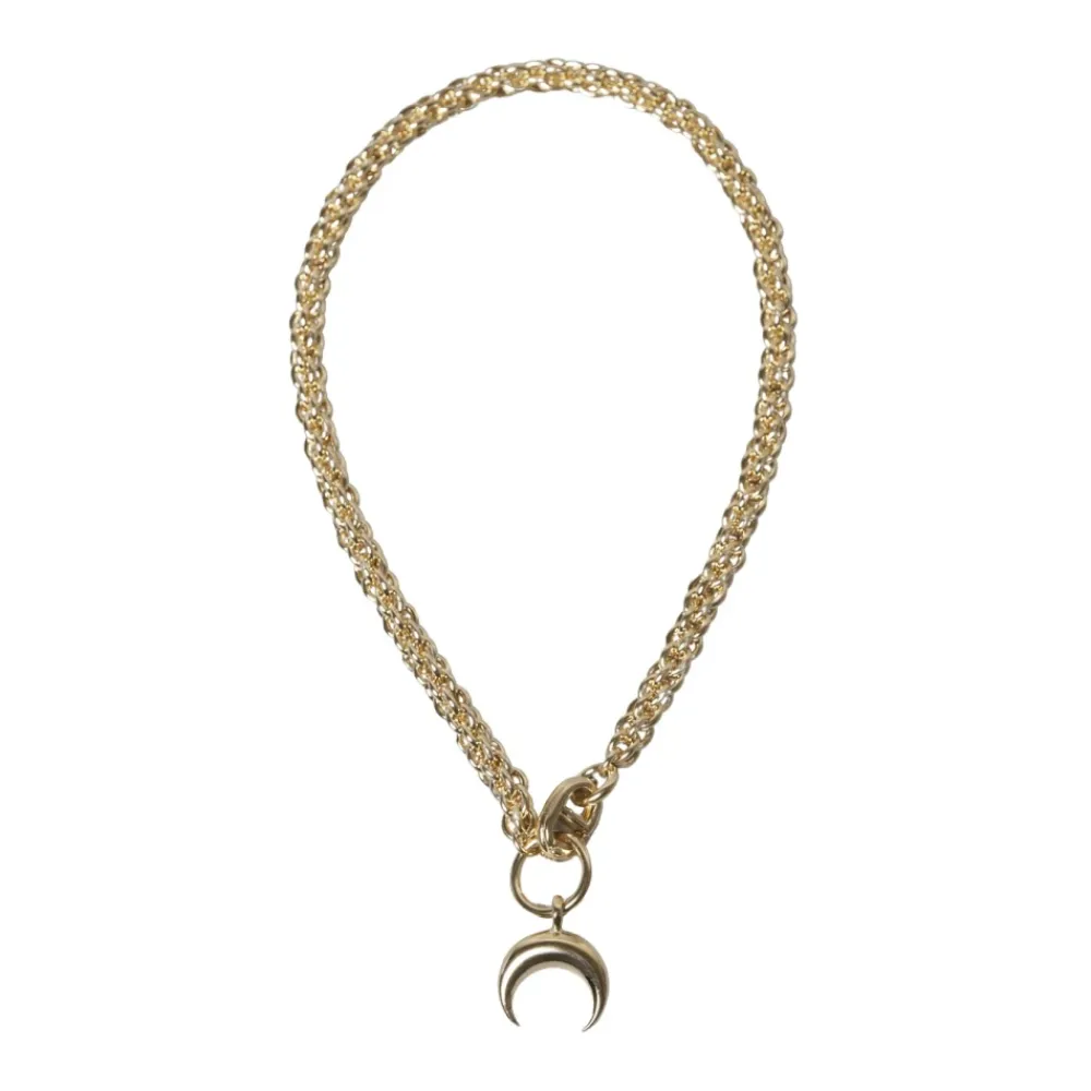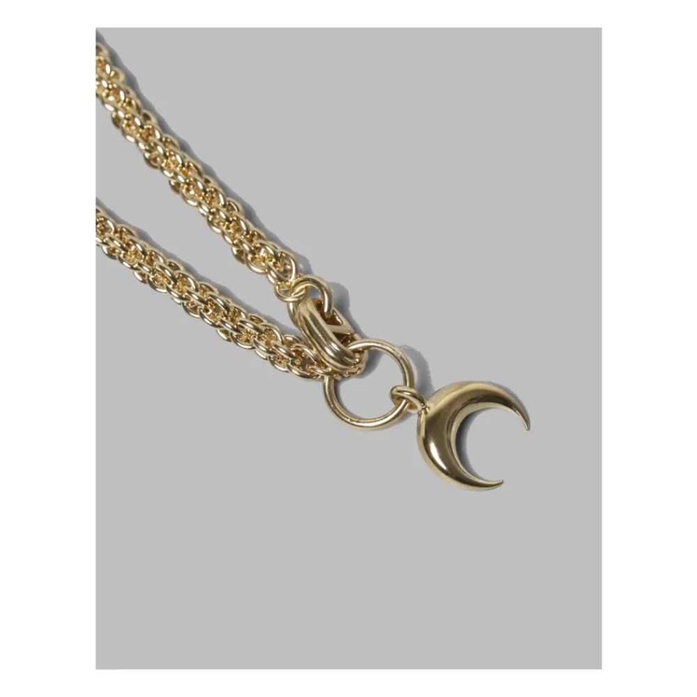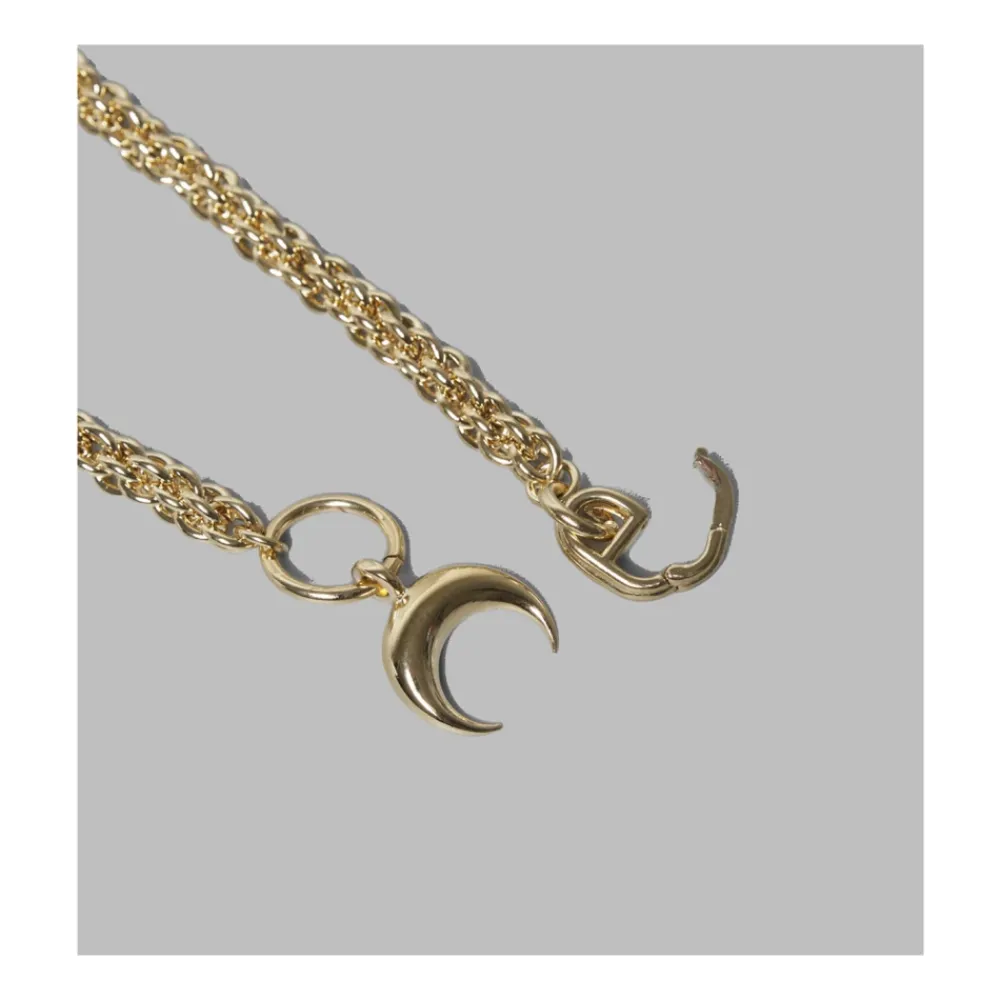 Forkæl dig selv med denne smukke guldhalskæde fra Marine Serre. Lavet med en base af 100% tin og belagt med 100% guld, er dette tilbehør et must-have for enhver modebevidst kvinde.