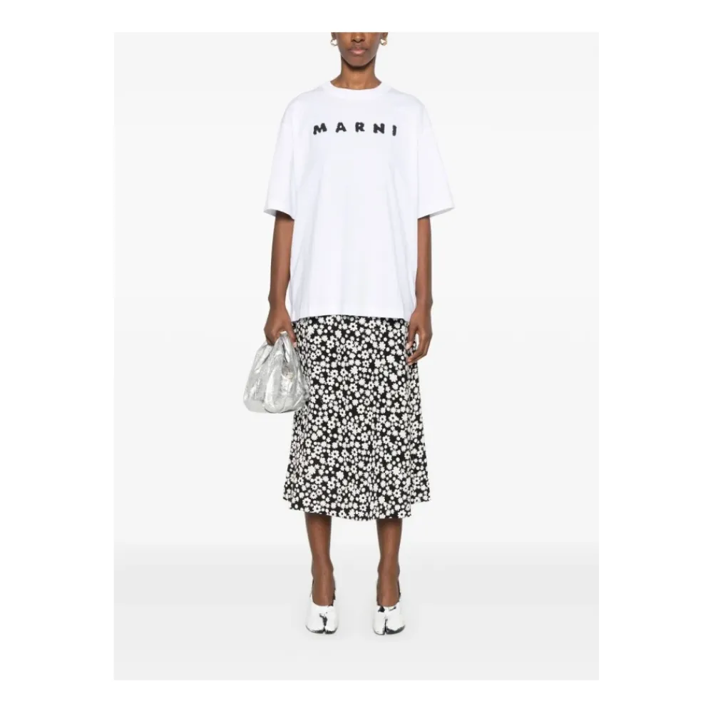 Opgrader dit afslappede look med denne Marni T-shirt, fremstillet af 100% bomuld for ultimativ komfort og stil. Perfekt til hverdagsbrug, denne T-shirt kombinerer enkelthed med elegance. Produkt detaljer: Hvid | 100% Bomuld | Rund hals | Korte ærmer | Dimensioner og pasform: Regular fit | Sammensætning og pleje: 100% Bomuld | Maskinvask kold, tørretumbles ved lav varme.