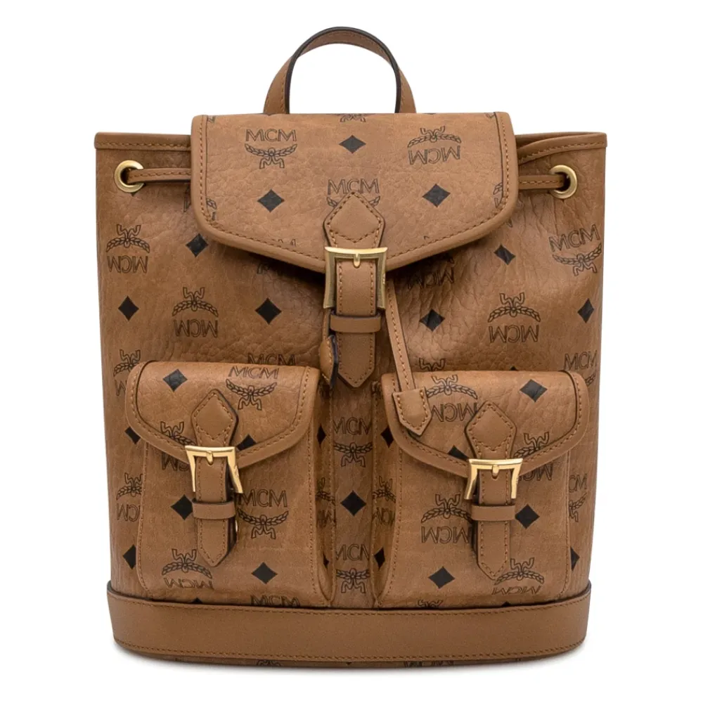 MCM Aren Drawstring Backpack er en kompakt, konvertibel mini-taske, der kombinerer Visetos monogram-kanvas med læderkant. Dens strukturerede bucket-silhuet og aftagelige kædehåndtag gør den til en alsidig mulighed for håndfri, hverdagsbrug. Vigtige egenskaber: Brun | Cognac | Visetos monogram-kanvas med læderkant | Holdbart monogram-kanvas | Aftagelige skulderstropper | Aftageligt kædehåndtag | Konvertibel: rygsæk til crossbody | Frontklaplommer | Magnetisk snap- og snørelukning | Justerbare stropper | Indvendig slip lomme | Snøre bucket-silhuet | Visetos monogram-print | Spædeudsmykning | Guldfarvet hardware | Kompakt struktureret silhuet | Dimensioner & pasform: 30 x 24,5 x 11 cm | Mini størrelse | Sammensætning & pleje: Krop: 63% polyurethan, 17% bomuld, 20% polyester | Kant: naturligt læder | Foring: mikrofiber med ruskind finish | Hardware: 24k guldbelagt messing