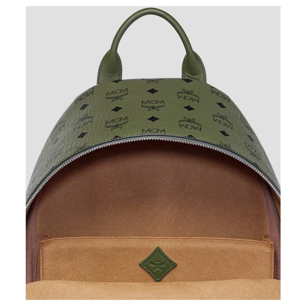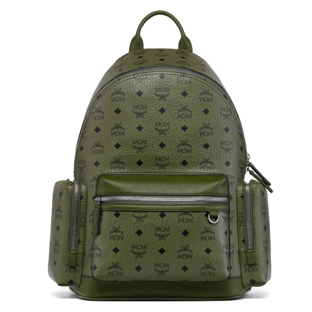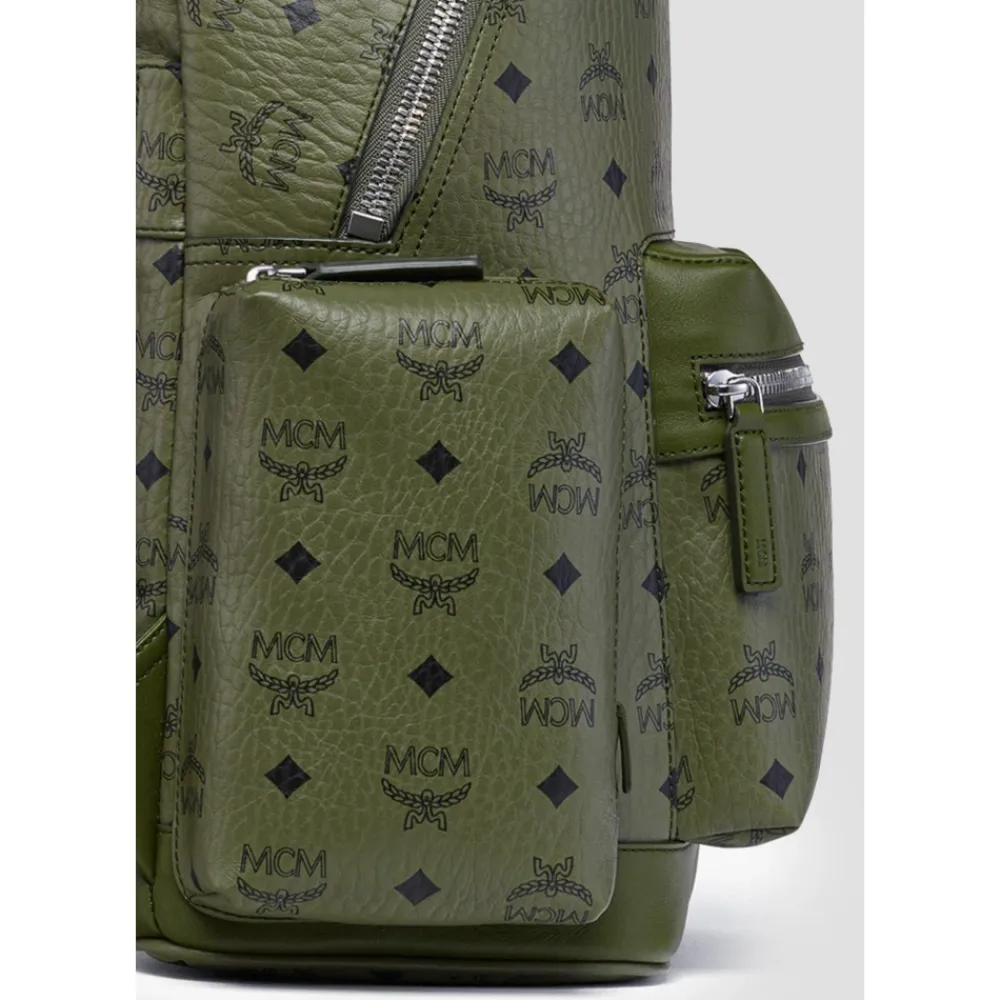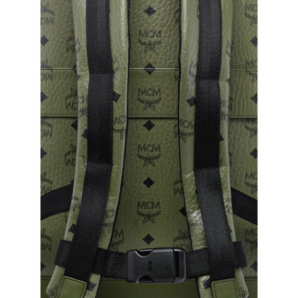 MCM Rygsæk fremstillet i Visetos-kanvas med læderkant, designet til daglig pendling og sikker opbevaring af en 13-tommers bærbar computer eller tablet. Vigtigste egenskaber: Grøn | Visetos-kanvas | Lynlåslomme foran | Sidelommer med lynlås | Dobbelt lynlåslukning i hovedrummet | Indvendig lomme til 13-tommers bærbare computere og tablets | Justerbare skulderstropper | Toplæderhåndtag | Skulderremmens længde: 74 cm til 88 cm | Håndtagsfald: 6,5 cm | Messinglogoplade | læderkant | Mikrofiberforing med ruskindseffekt | Sølvfarvet koboltmetalhardware | Mål & pasform: Skulderremmens længde: 74 cm til 88 cm | Top håndtagsfald: 6,5 cm | Kan rumme 13-tommers bærbare computere og tablets | Sammensætning & pleje: Visetos-kanvas | Naturlæder (kant) | Mikrofiberforing (ruskindseffekt) | Messing (logoplade) | Koboltmetalhardware (sølvfarvet)