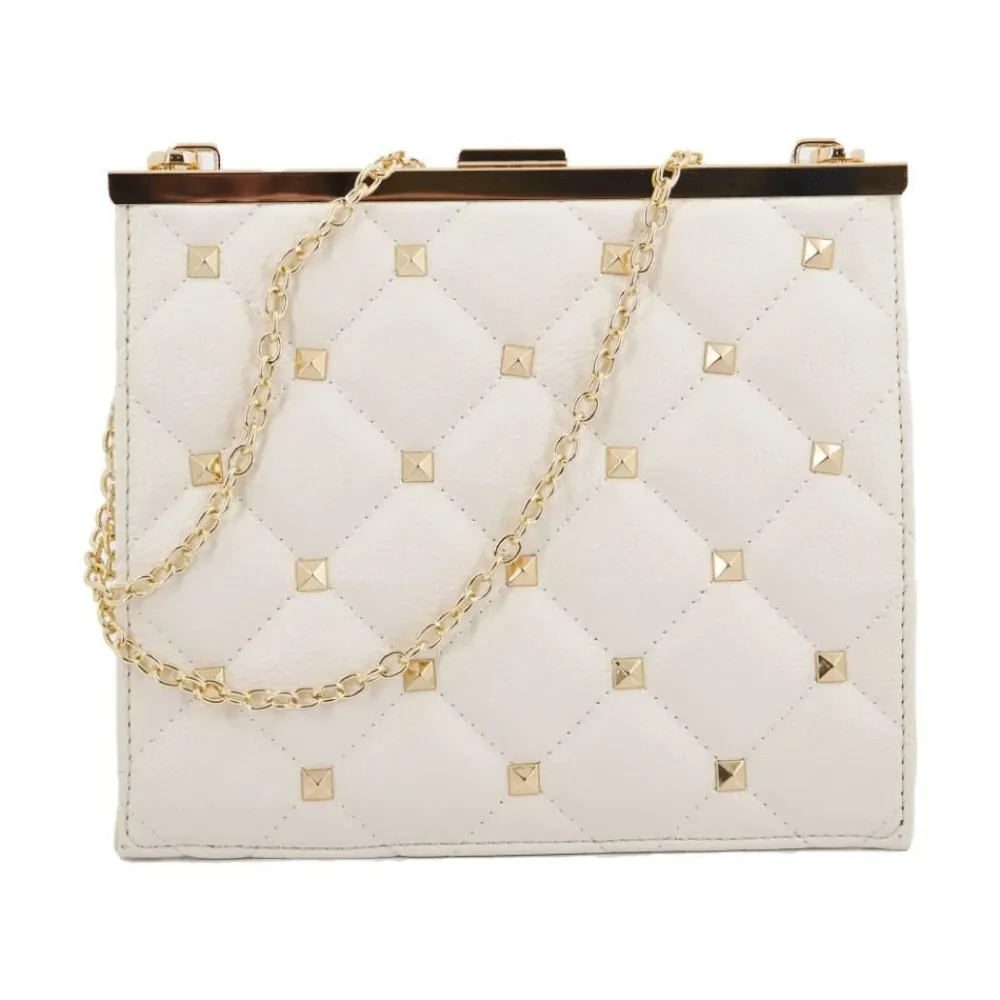Menbur Bolso Acolchado Detalle Tach er en kompakt, quiltet clutch med nittedetaljer, designet til aftenbrug og særlige lejligheder. Vigtige egenskaber: Hvid | Syntetisk | Quiltet body | Nittedetaljer | Kompakt clutch-silhuet | Syet konstruktion | Mål & pasform: Længde: 21,5 cm | Bredde: 7 cm | Højde: 19 cm | Sammensætning & pleje: Yderside: Syntetisk | For: Bomuld