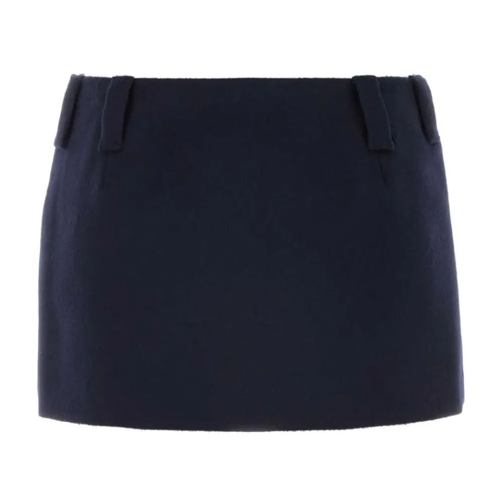 Miu Miu Logo Patch Mini Skirt kombinerer en ren mini-silhuet med et diskret logo-patch for et raffineret, alsidigt garderobestykke. Nøgleattributter: Blå | Logo-patch | Mini-silhuet | Simpel silhuet