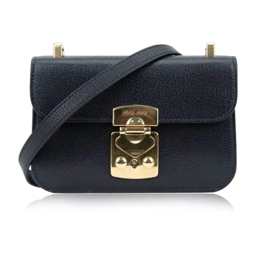 Miu Miu Skuldertasker*Læder Skuldertaske med Tryklås Sort
