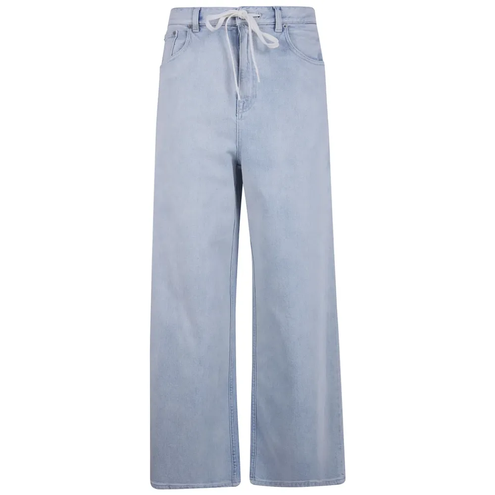 MM6 Maison Margiela 5-Pocket Denim Bukser leverer en afslappet, bredbenet silhuet med en lav talje og mærkets signatur vandrette hvide sting bagpå for en subtil, karakteristisk detalje. Vigtigste egenskaber: Blå | Lyseblå | Bomuld | Stretch denim | Five-pocket konstruktion | Lynlåsgylp med knaplukning | Bæltestropper | Bredt ben | Lav talje | Hvide vandrette sting bagpå | Falmning/vask detaljer | Dimensioner & pasform: Bred pasform | Lav talje | Sammensætning & pleje: Krop: 98% bomuld, 2% elastan | Lomme foring: 65% polyester, 35% bomuld