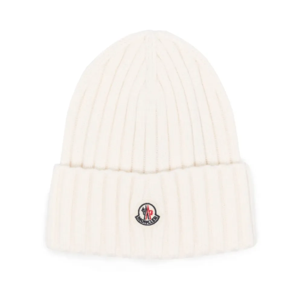 Moncler Huer & Kasketter*Ivory White Ribstrikket Beanie Hat Hvid