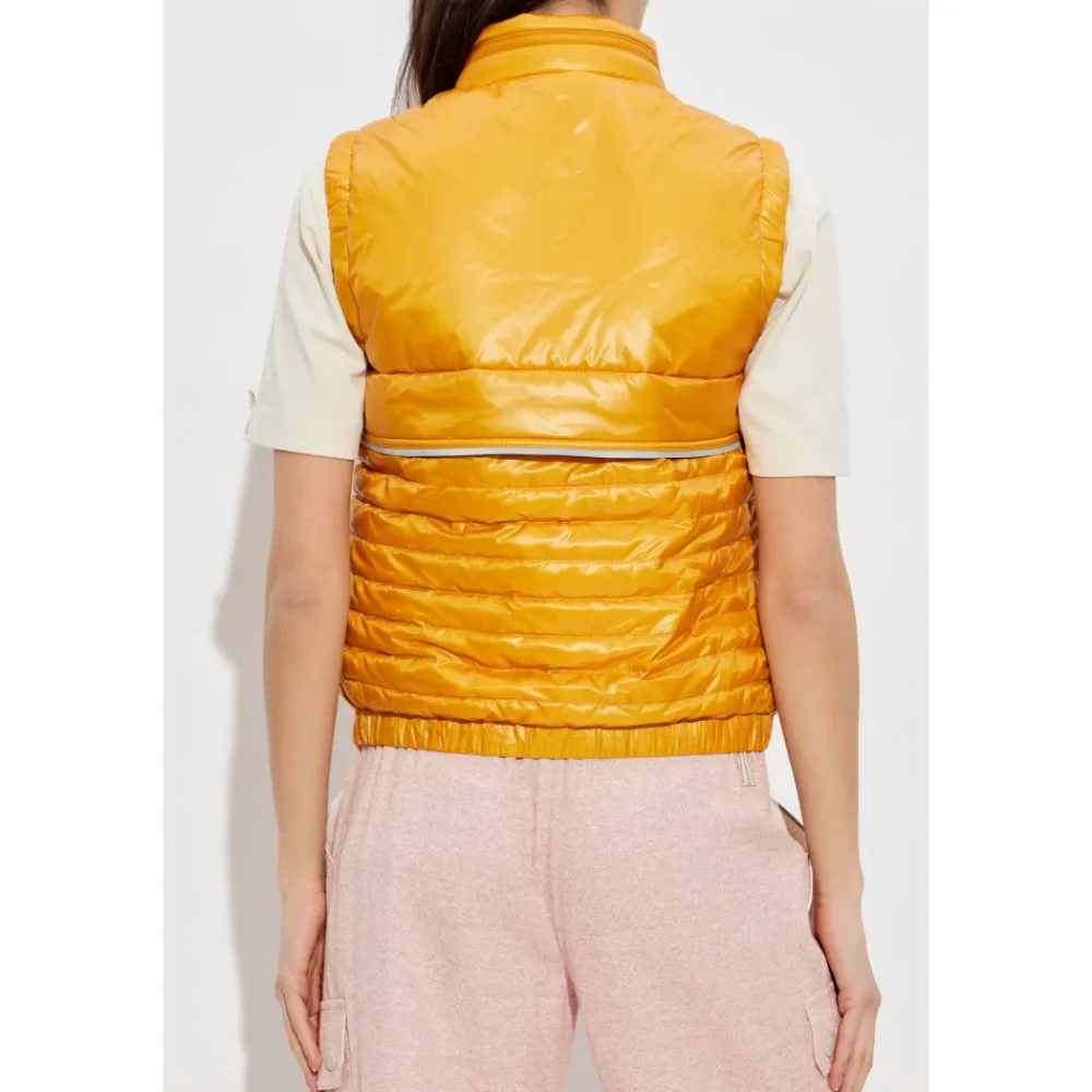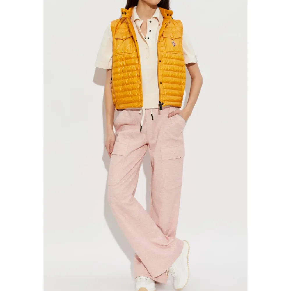 Moncler præsenterer Day-Namic Down Vest, en kort, skræddersyet dunjakke, der kombinerer en blank polyamidskal med vandret quiltning for et poleret, sporty look. Vigtige egenskaber: Orange | Polyamid | Isolerende (dunfyldt) | Letvægt | To brystlommer med klapper | Central række af trykknapper | Vandret quiltning | Kort, skræddersyet silhuet | Blank finish | Mål & pasform: Modelhøjde: 177 cm | Buste: 83 cm | Talje: 61 cm | Hofter: 89 cm | Modellen er iført størrelse: 1 | Skræddersyet pasform | Lidt sporty, kort snit | Sammensætning & pleje: Yderlag: 100% polyamid | Padding: 90% dun, 10% fjer