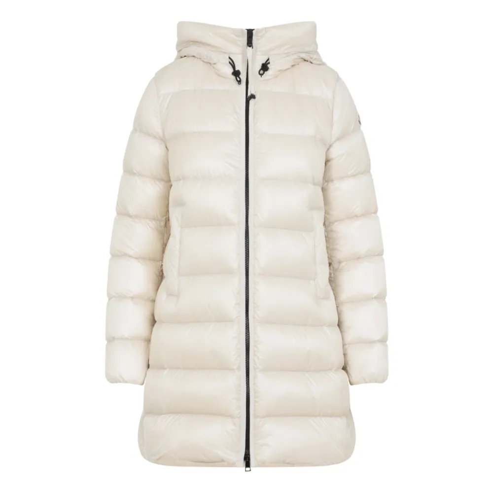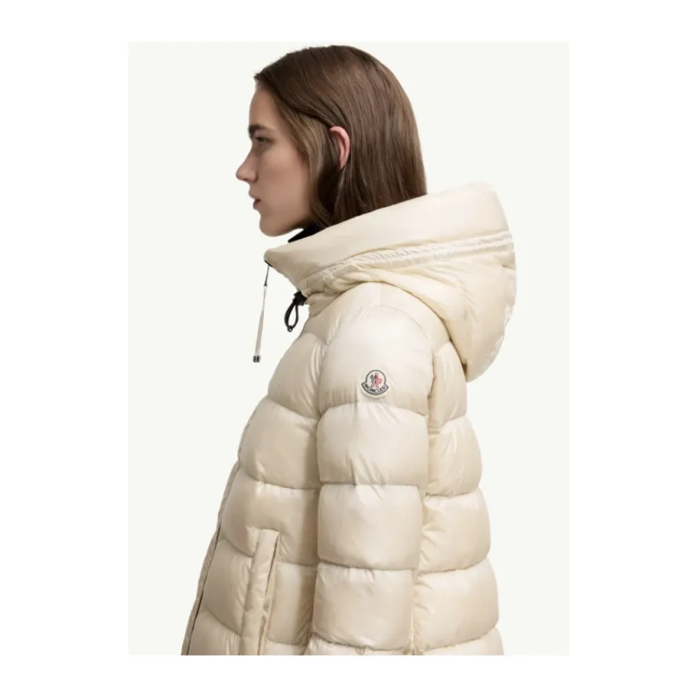 Hold dig varm og stilfuld i denne lyse beige Moncler ‘Suyenne’ mid-length dunjakke til kvinder. Lavet af longue saison med vandafvisende stof, har denne jakke en justerbar hætte med snøre, tovejs lynlås, to forlommer, elastiske manchetter og det ikoniske logo på ærmet. Lavet med 100% Polyamid/Nylon yderstof og foring, og fyldt med 90% dun og 10% fjer.