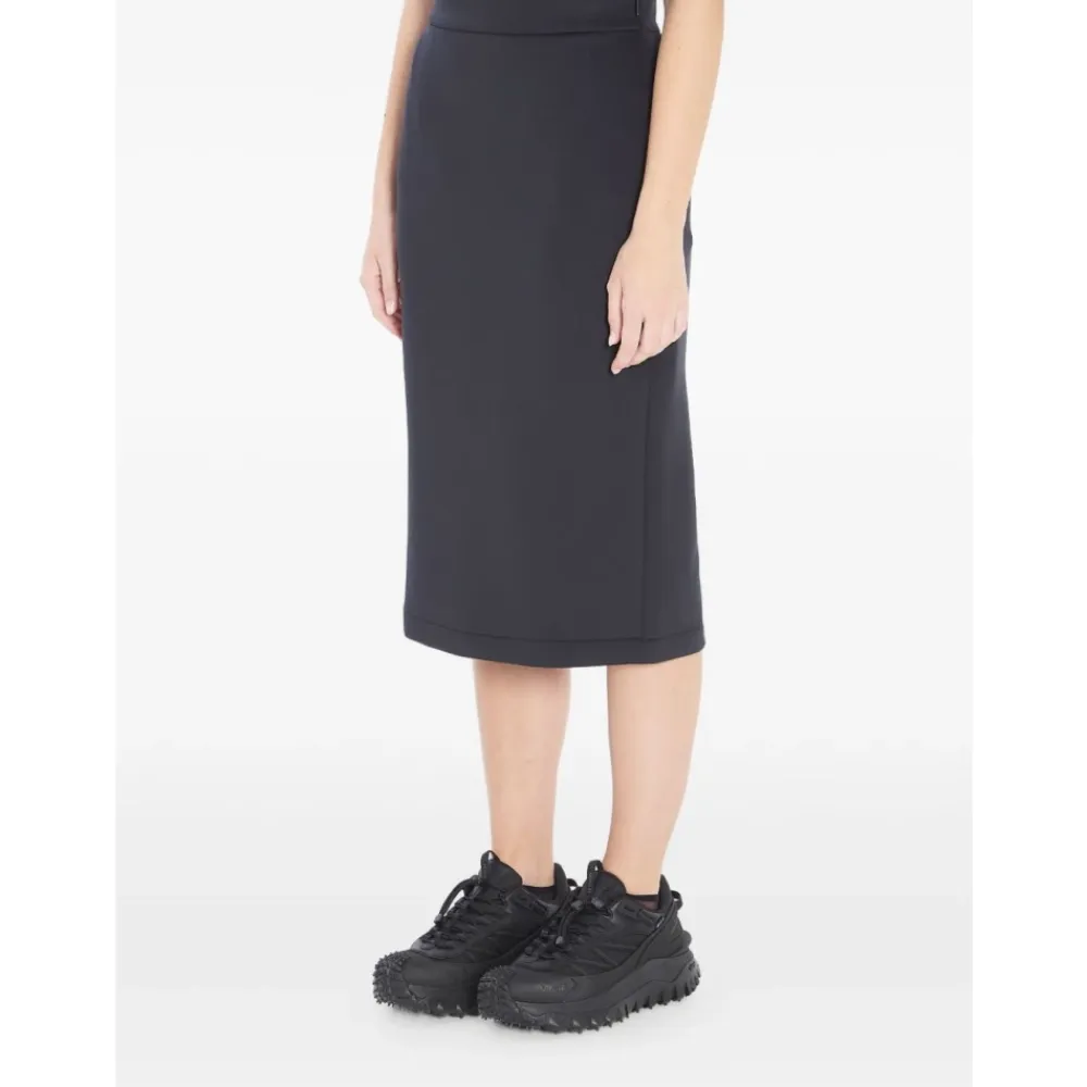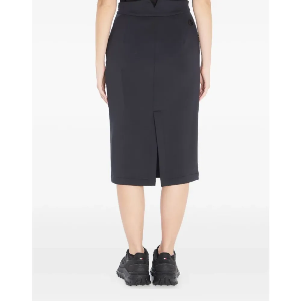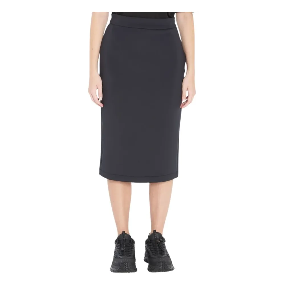 Moncler EE72 nederdel fra Moncler x Edward Enninful kollektionen. En lige midi-nederdel med en slids midt bagpå og lynlås i siden, designet for nem brug og en ren, moderne silhuet. Vigtige egenskaber: Sort | Polyester | Lynlåslukning i siden | Slids midt bagpå | Elastisk talje | Lige snit | V-detalje bagpå taljen | Logo patch bagpå | Midi længde | Dimensioner & pasform: Almindelig pasform | Sammensætning & pleje: 87% polyester | 13% elastan