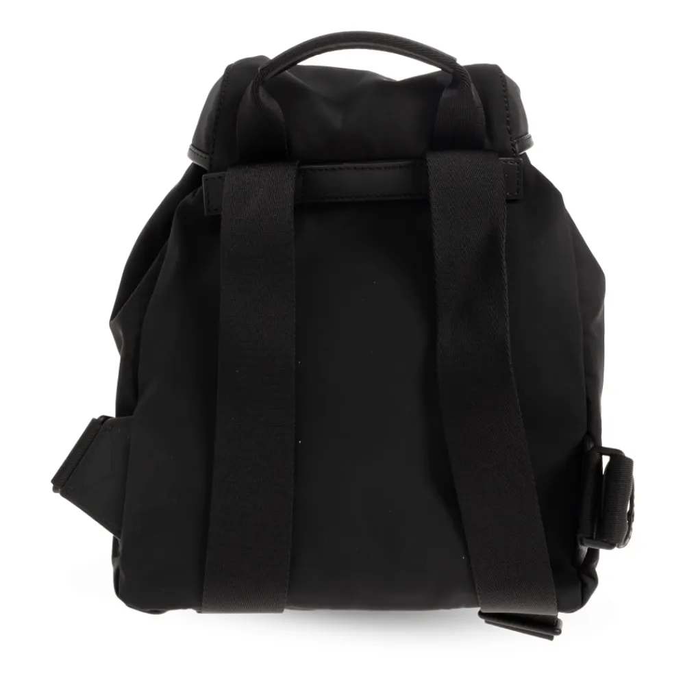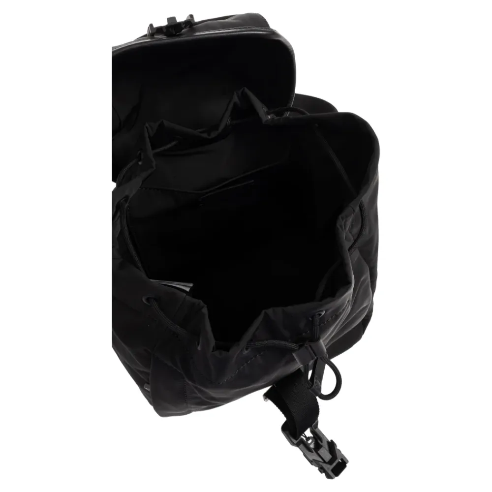 Trick Rygsækken fra Moncler er et alsidigt og stilfuldt tilbehør, perfekt til hverdagsbrug. Med et elegant sort design og et fremtrædende hvidt logo kombinerer den funktionalitet med mode. Produkt detaljer: Sort | Polyester | Justerbar rem | Magnetisk klaplukning | Justerbare skulderstropper | Halvrundt håndtag | Lynlåslomme foran | Sort metal hardware | Snørelukning indvendigt med stiklomme | Dimensioner og pasform: Højde: 25 cm | Bredde: 25 cm | Sammensætning og pleje: 100% Polyester | 63% Polyester | 27% Bomuld | Metal | Læder