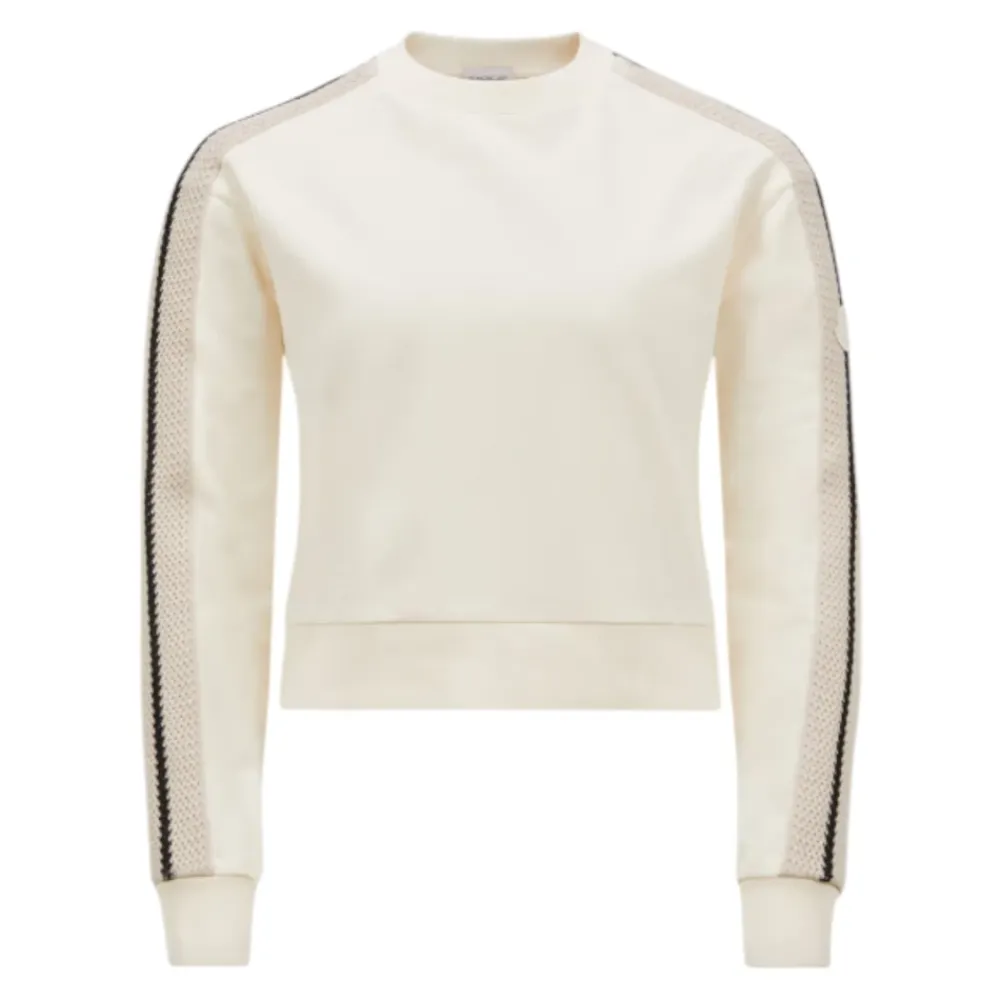Moncler Stribet Hæklet Sweatshirt Sæt tilbyder et elegant twist på afslappet tøj med sine fine hæklede detaljer. Perfekt til et sommerligt ensemble, dette sæt kombinerer komfort og stil ubesværet. Produkt detaljer: Lys Beige | Beige | Bomuldsfleece | Crew Neck | Hæklet Kant Langs Ærmer | Dimensioner og pasform: Oversized Pasform | Sammensætning og pleje: 100% Bomuld | Maskinvask kold, tørretumbles ved lav varme.