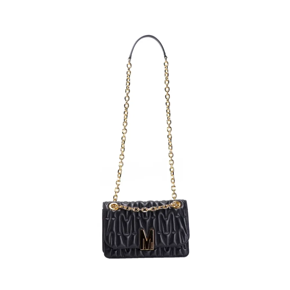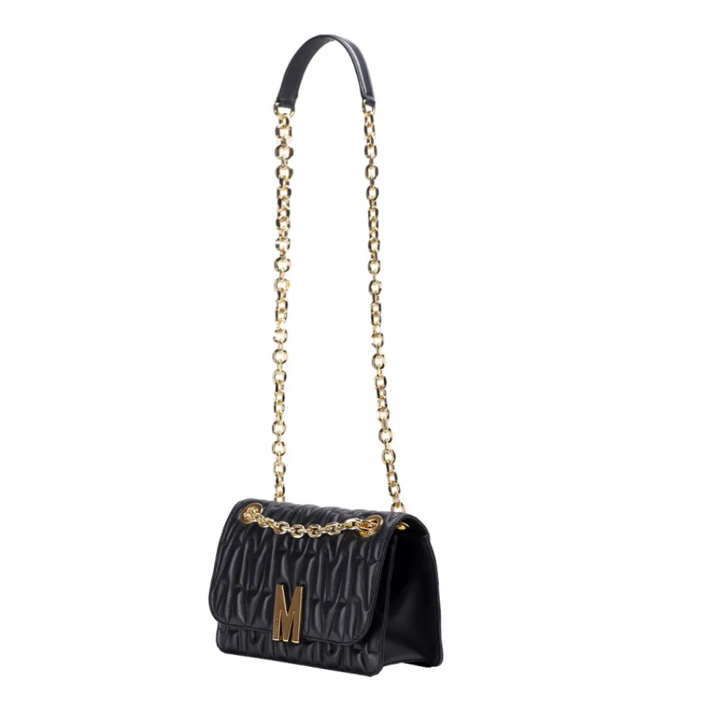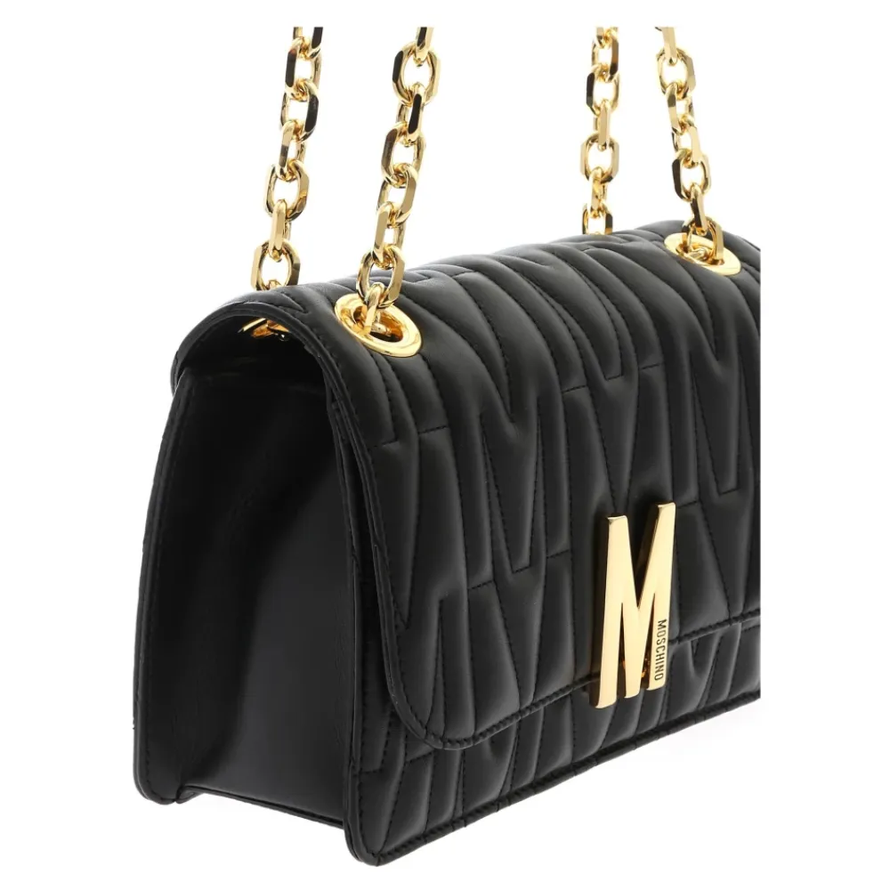 Moschino Matelassé Medium Skuldertaske kombinerer signatur matelassé quiltning med et markant, overdimensioneret metal “M” lås – en raffineret skuldertaske/crossbody-taske til hverdags- og aftenbrug. Vigtigste egenskaber: Sort | Nero | Lammeskindslæder | Slidstærkt lammeskindslæder | Dobbelt indvendigt rum | Sidelomme med lynlås og M-formet puller | Kæderem med læder skulderpude | Støvpose medfølger | Matelassé “M” quiltet motiv overalt | Overdimensioneret metal “M” frontlukning med graveret logo | Guldfarvet hardware | Mål & pasform: L 23,5 x H 17 x D 9,5 cm | 23,5 x 17 x 9,5 cm | Maks. remlængde 55 cm | Medium størrelse | Kan bæres over skulderen eller som crossbody | Sammensætning & pleje: 100% lammeskind (Pelle di agnello) | Foring: 100% polyester (Fodera 100% Poliestere) | Tør af med en blød, tør klud. Undgå iblødsætning eller brug af skrappe kemikalier. Brug en speciallæderrens/balsam til læder. Opbevar i den medfølgende støvpose, og hold den væk fra direkte sollys og varmekilder.