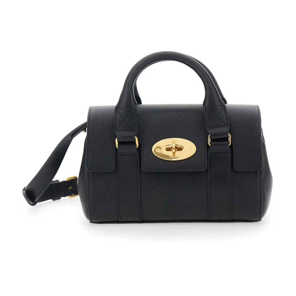 Mulberrys Bayswater Mini Håndtaske kombinerer en kompakt, struktureret silhuet med brandets signatur twist-lock lukning. Den hamrede, narvede læderfinish og alsidige bæremuligheder gør den velegnet til både hverdagsbrug og finere lejligheder. Nøgleattributter: Sort | Narvet læder | To læderhanke foroven | Justerbar og aftagelig skulderrem | Twist-lock lukning foran | Et hovedrum | En indvendig kortlomme | Guldfarvet hardware | Hammeret tekstur | Struktureret silhuet | Kompakt profil | Top-hank design | Dimensioner & pasform: 22 x 14 x 8.5 cm | Skulderremmens længde: 109 cm | Sammensætning & pleje: Narvet læder