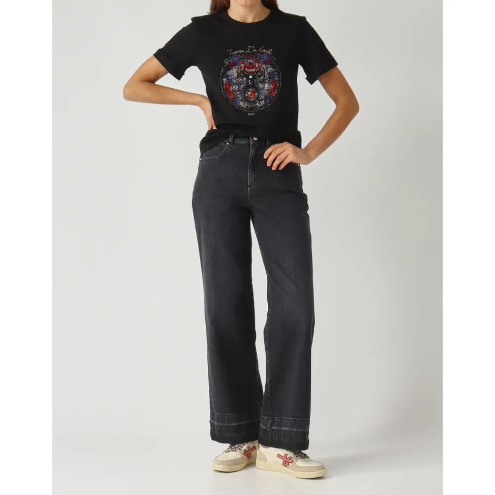Nenette T-Shirt Dobe er en bomulds T-shirt med rund hals, der er løftet af en central hotfix strass-roset, hvilket giver et poleret afslappet look, der er velegnet til hverdagsbrug. Vigtige egenskaber: Sort | Nero | Bomuld | Rund halsudskæring | Korte ærmer | Hotfix strass-roset | Logoprint | Dimensioner og pasform: Almindelig pasform | Sammensætning og pleje: 100% bomuld
