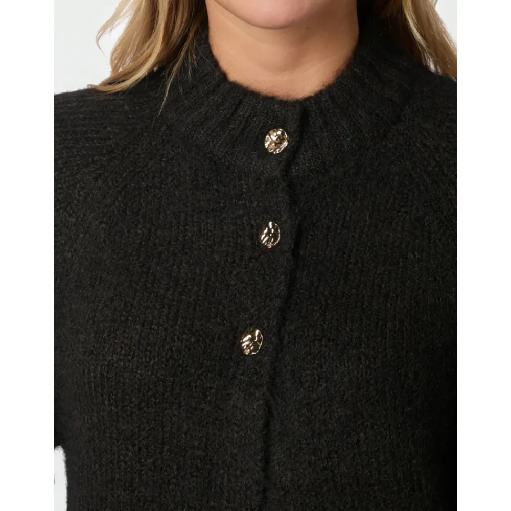 Neo Noir boxy cardigan med brede ærmer og dekorative knapper foran, der giver et feminint og trendy look. Den bløde, fluffy strik giver behagelig varme, der er ideel til efterår og vinter, og kan styles til både hverdag og arbejde. Nøgleattributter: Brun | Mørkebrun | Polyester | Blød følelse | Varme, der passer til efterår og vinter | Boxy silhuet | Brede ærmer | Dekorative knapper foran | Fluffy tekstur | Mål og pasform: Boxy fit | Modellen er 176 cm høj og bruger størrelse 36 | Sammensætning og pleje: 70% polyester | 21% nylon | 8% uld | 1% elastan