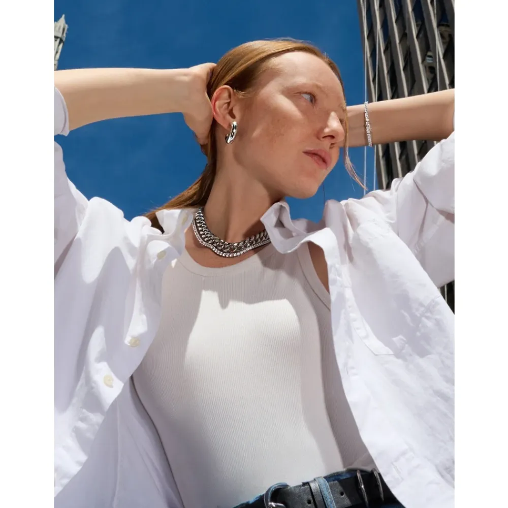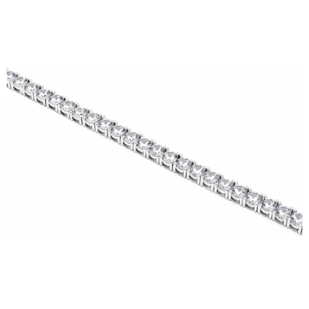 Bracelet in Stainless Steel Clear Cubic Zirconia Stones Handmade in Los Angeles Product Code: WSP_014 Designer’s Notes This tennis bracelet blends timeless sparkle with modern durability — crafted in stainless steel and set with precision-cut CZ stones for that just-right shine. Made to layer, made to last. Please note that all our pieces are crafted by hand and one-of-a-kind, and may therefore vary slightly in size, shape, and color.