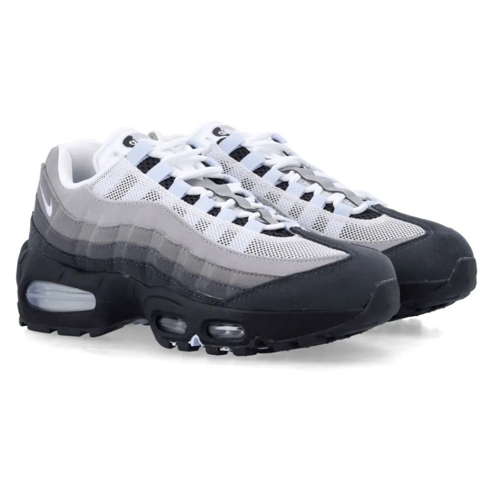 Nike Air Max 95 OG vender tilbage i ‘Big Bubble’-udgaven, der kombinerer silhuettens karakteristiske lagdelte overdel med forstørret Max Air-stødabsorbering for enestående komfort og visuel effekt. Vigtige egenskaber: Grå | Sort | Blålig nuance | Mesh, Syntetisk læder | Åndbar mesh-overdel | Forstørrede Max Air-enheder i hæl og forfod | Responsiv stødabsorbering for komfort, der holder længe | Fleksible riller for bevægelse | Slidstærk gummiydersål | Bølge-lignende lagdelte paneler inspireret af menneskelig anatomi | Gradient farvepalet, der toner fra sort til hvid | Særlig “Big Bubble”-udgave