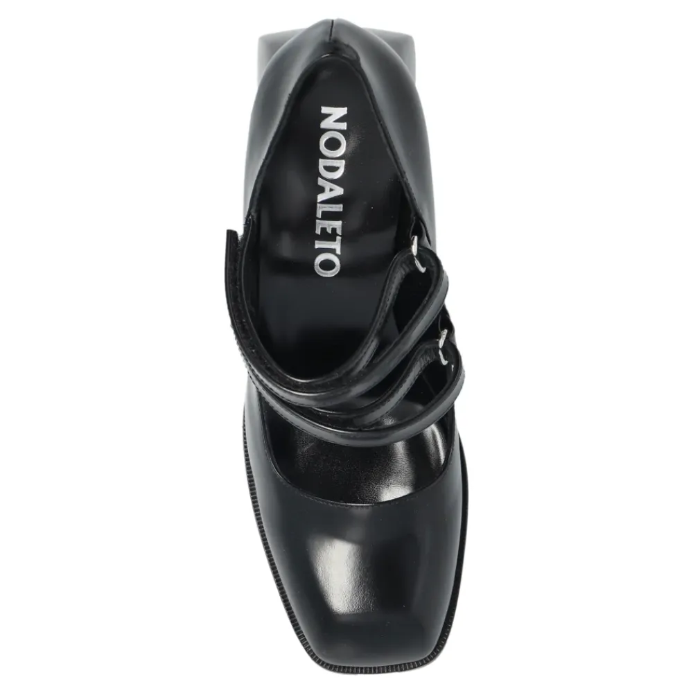 Introduktion af SORT HØJHÆLEDE SKO fra Nodaleto, som kombinerer ELEGANCE og MODERNITET. Disse unikke pumps fanger opmærksomheden med deres kraftige, firkantede hæl og platform, hvilket giver dem en uovertruffen stil. Fremstillet af blank sort læder udstråler disse sko luksus og subtil sophistication. Med to remme over vristen, sikret med små spænder, tilbyder de ekstra støtte og stabilitet. Skoens indre er prydet med Nodaleto-logoet, hvilket understreger deres eksklusive oprindelse. Den universelle sorte farve gør dem til et ideelt valg til mange outfits, både formelle og mere afslappede. HVORFOR SKAL DU KØBE DETTE PRODUKT? * UNIKT UDSEENDE takket være den kraftige hæl og platform. * HØJKVALITETSMATERIALER – 100% læder. * SUBTILE DETALJER – spændte remme og logo indeni. * VERSATILITET – perfekt til forskellige lejligheder. Platformhøjde: 2,5 cm Hælhøjde: 9 cm