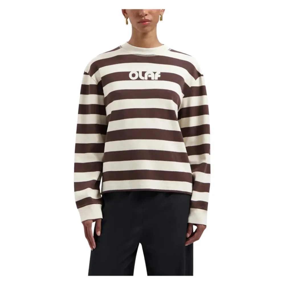 Olaf Hussein Sweatshirts*Striped Rib Retro Logo Crewneck Hot Fudge Brun
